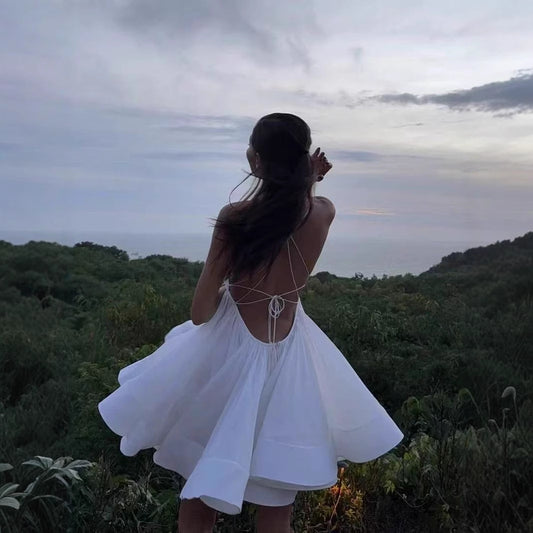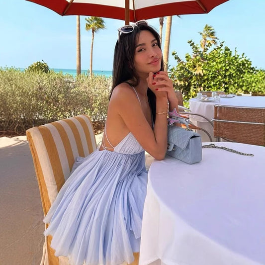 Sexy Sling Deep-V Backless Pleated Dress