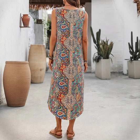 Casual Print Round-Neck Sleeveless Dress