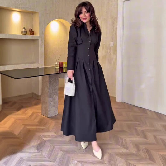 Retro Elegant Long-Sleeve Shirt Dress Long Dress
