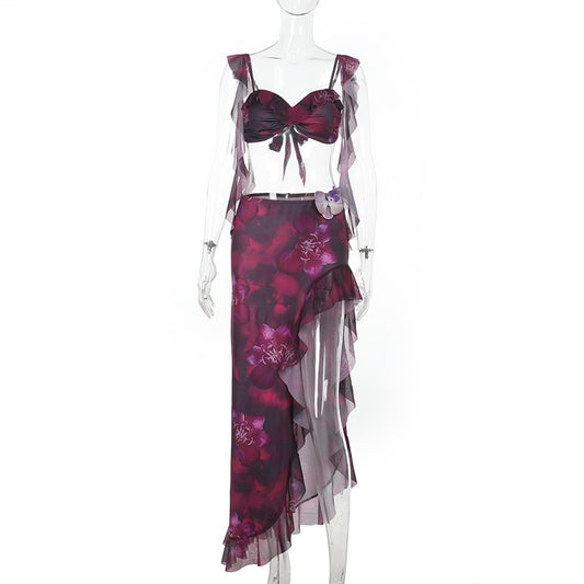 French Street Vacation Frill Printing Suit
