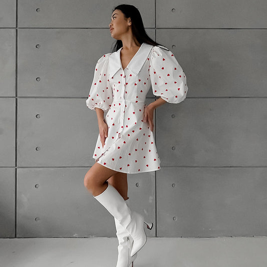 Slim-Fit Sweet-Style Pleated Short Dress