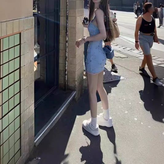 Sexy Sling Deep-V Backless Pleated Dress