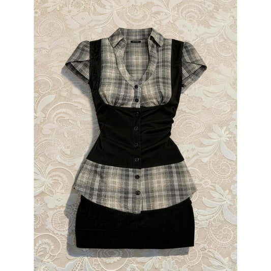 Black Crew-Neck Long-Sleeve Sheer Vintage Zippered Tulle Shirt