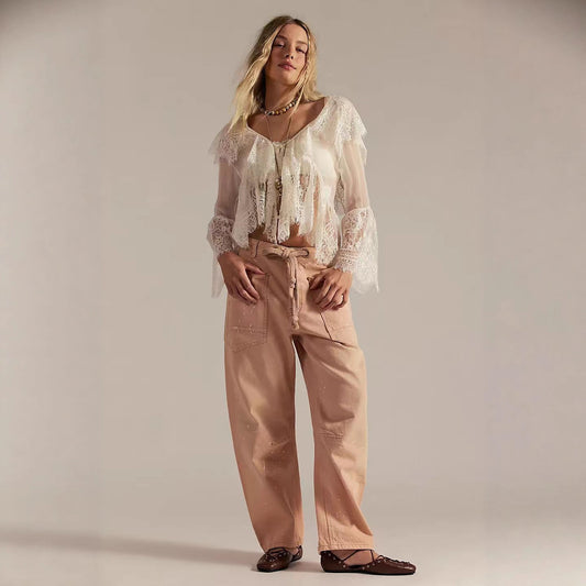 Mid-Rise Cotton-Linen Casual Loose-Fitting Trousers