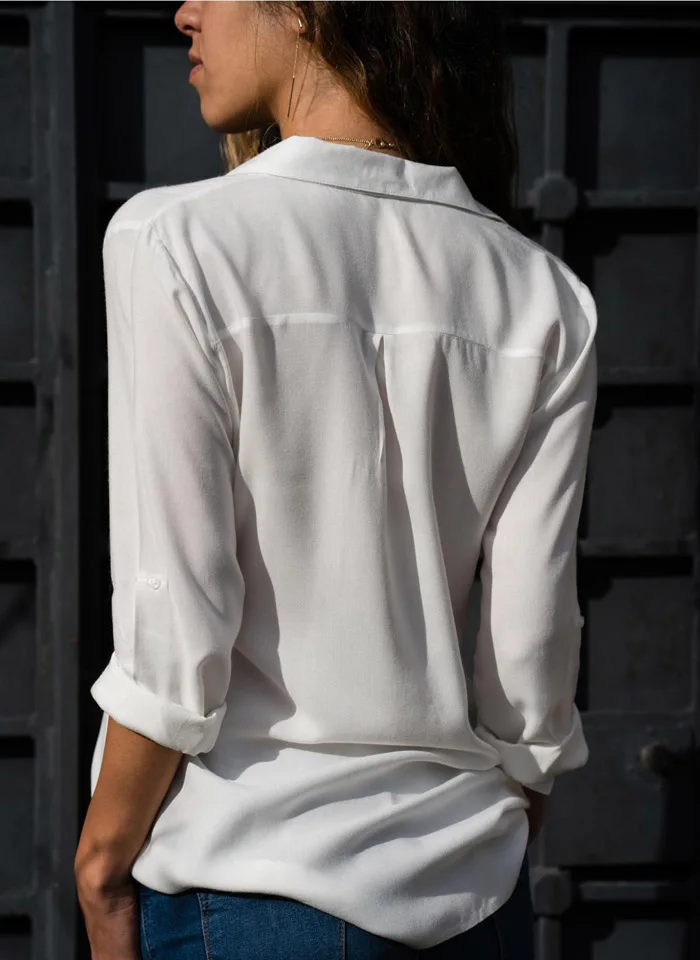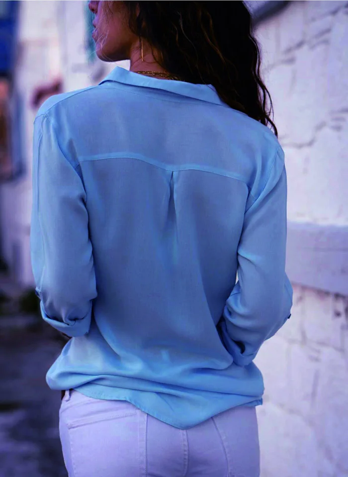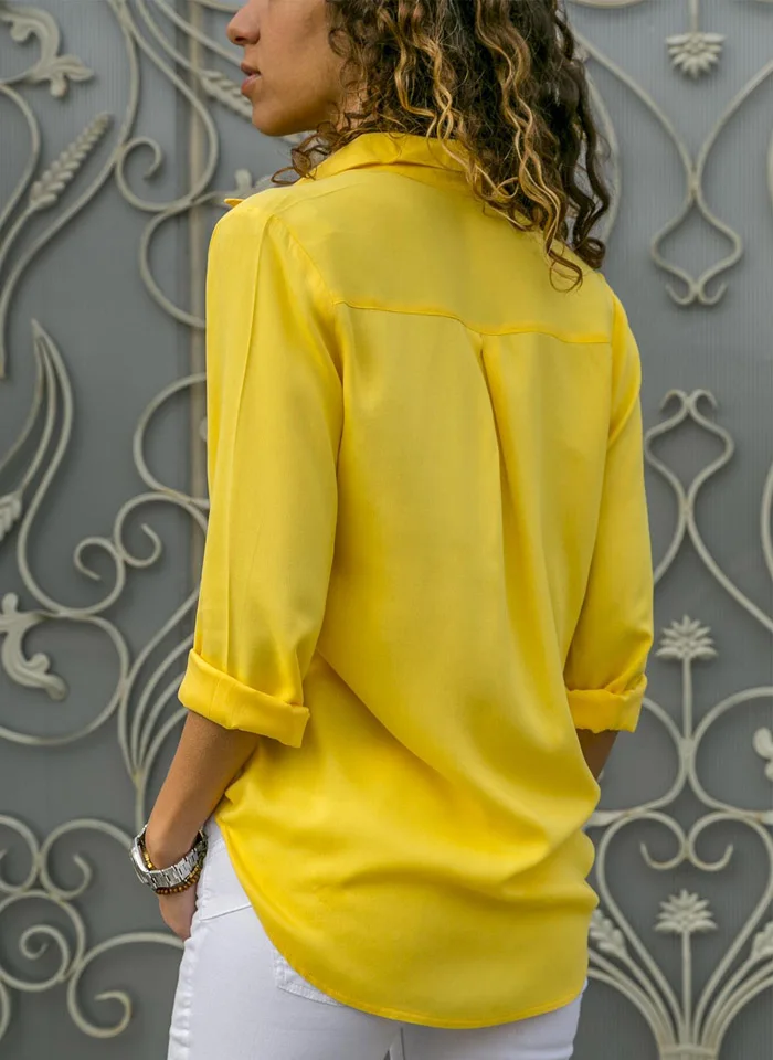 Ladies' Long-Sleeve Deep V-Collar Chiffon Shirts & Tops