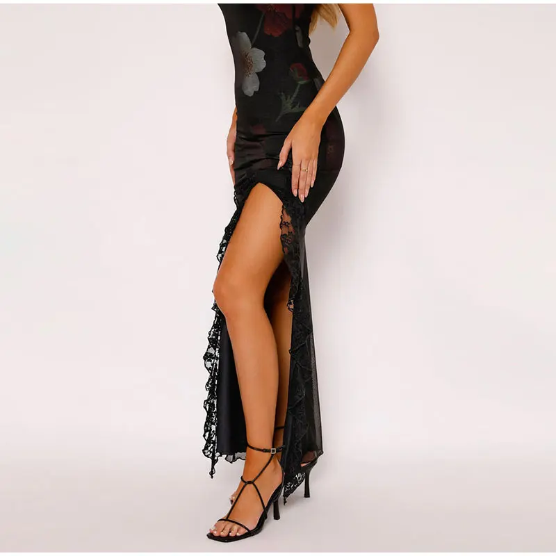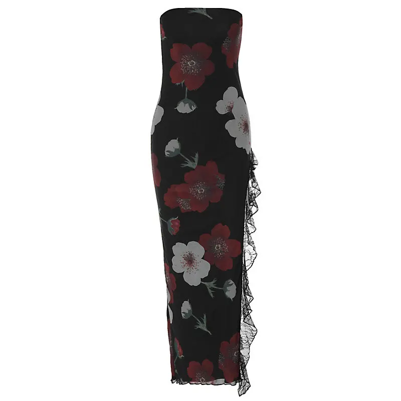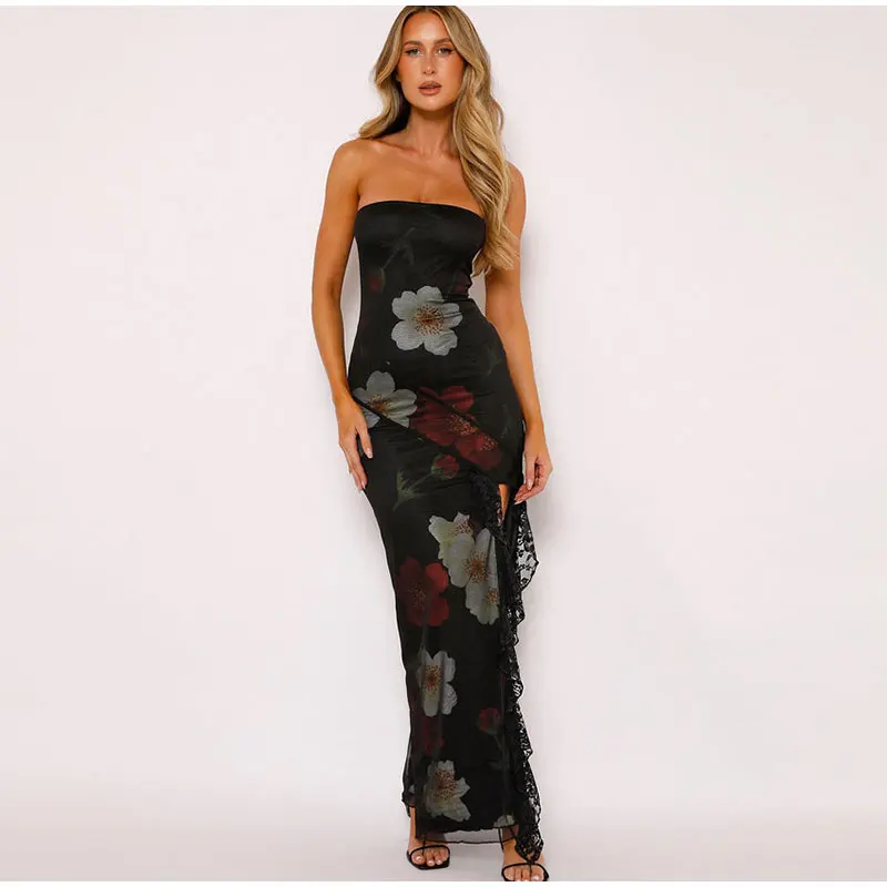 Backless Sleeveless Strapless Split Slim Long Lace Dress