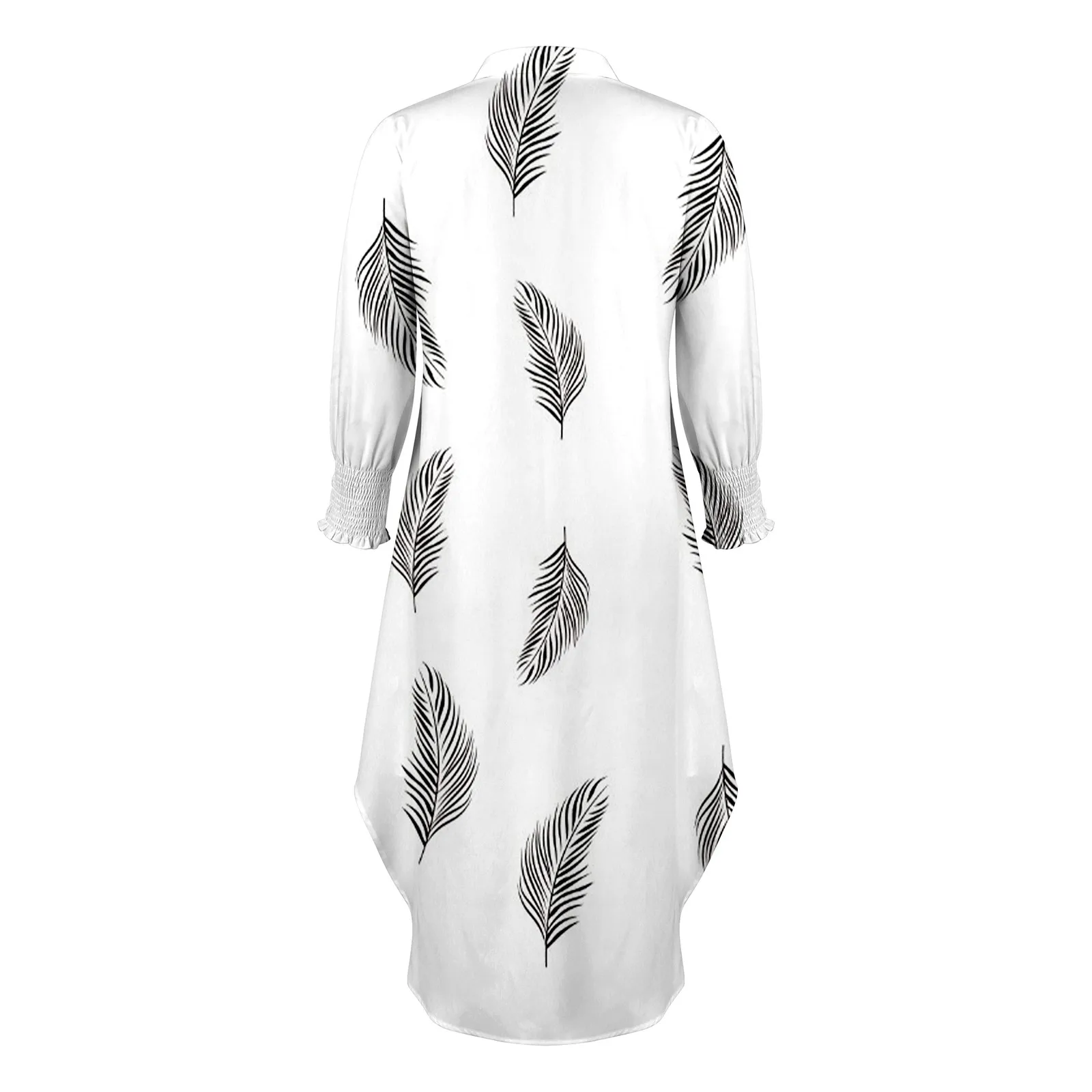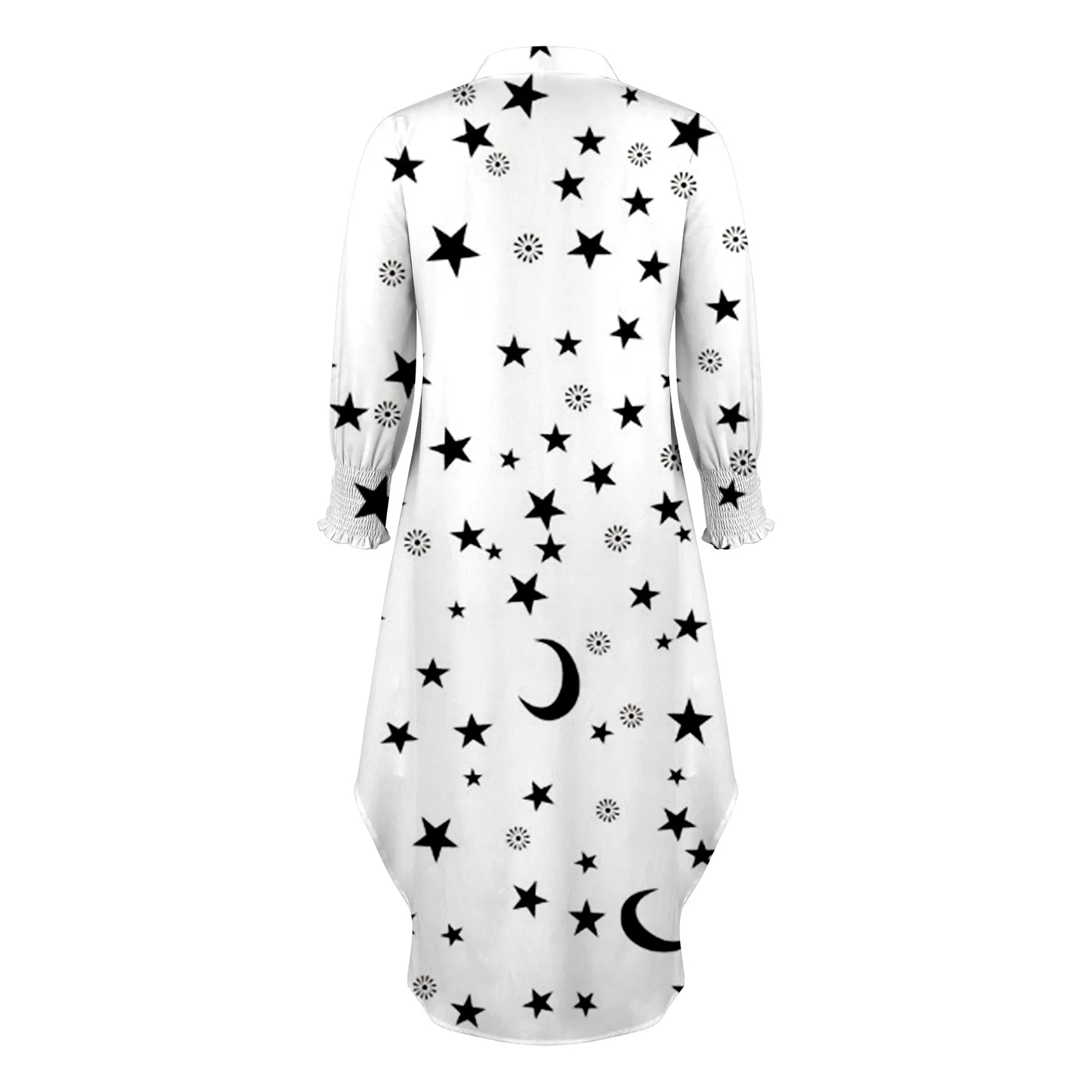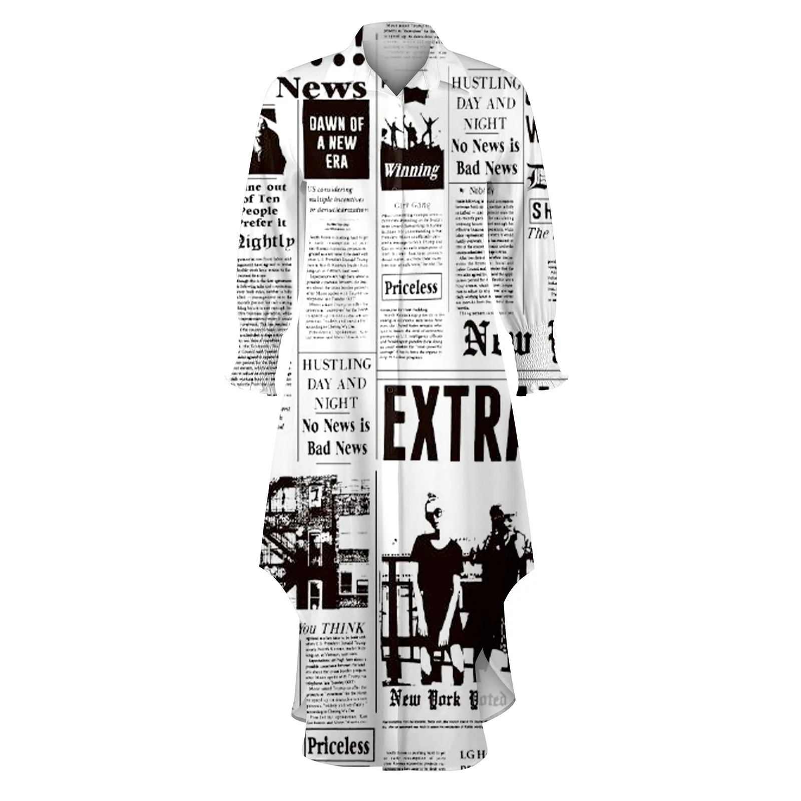 Butterfly Printed V-Neck Short-Sleeve Loose Long Dress