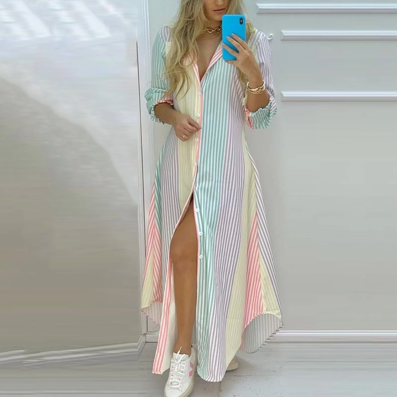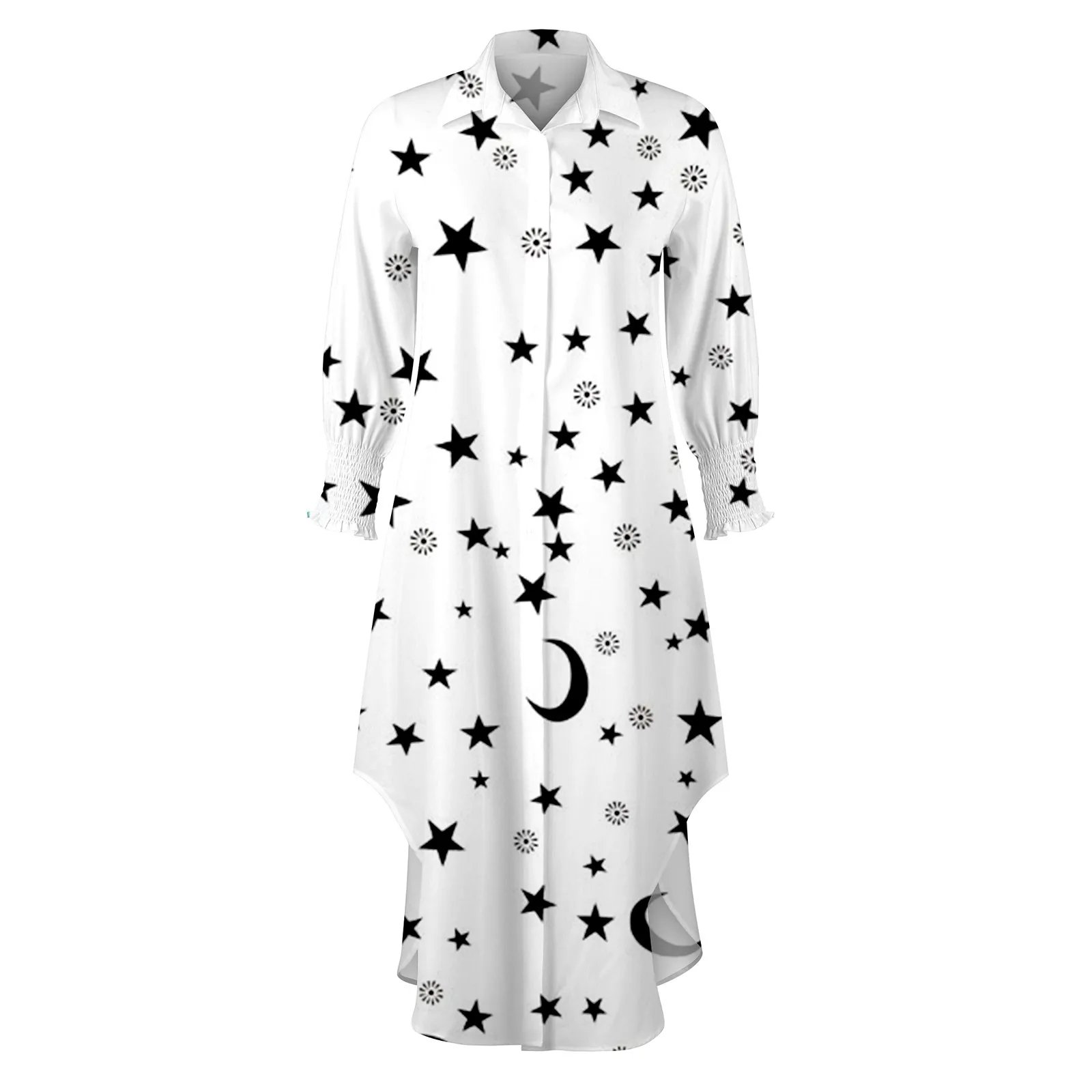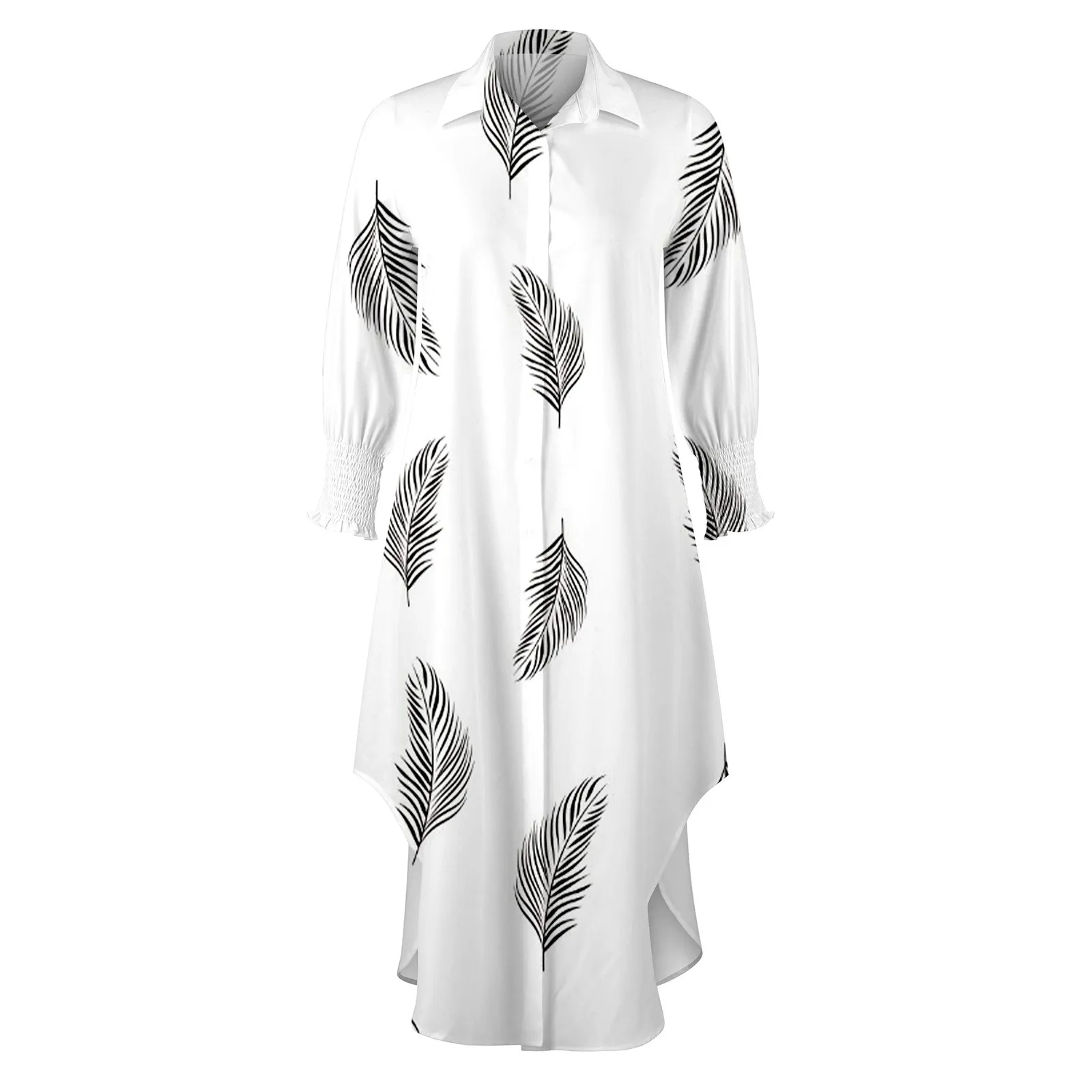 Butterfly Printed V-Neck Short-Sleeve Loose Long Dress