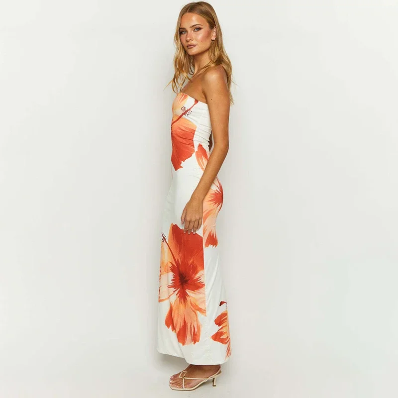 Cutenova Flower Printed Tubeless Long Dress