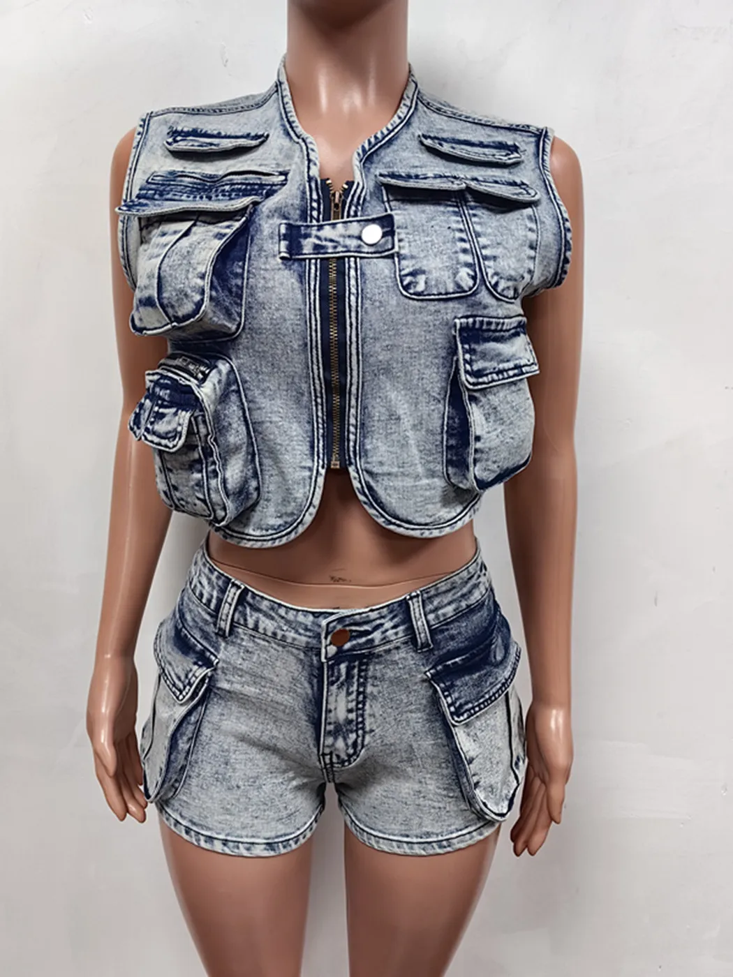 Denim Two-Piece Short Pants Outfit