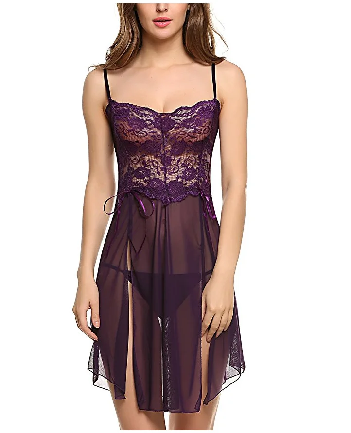 Lace Nightgowns - Plus Size Available - Night Dress+G-String