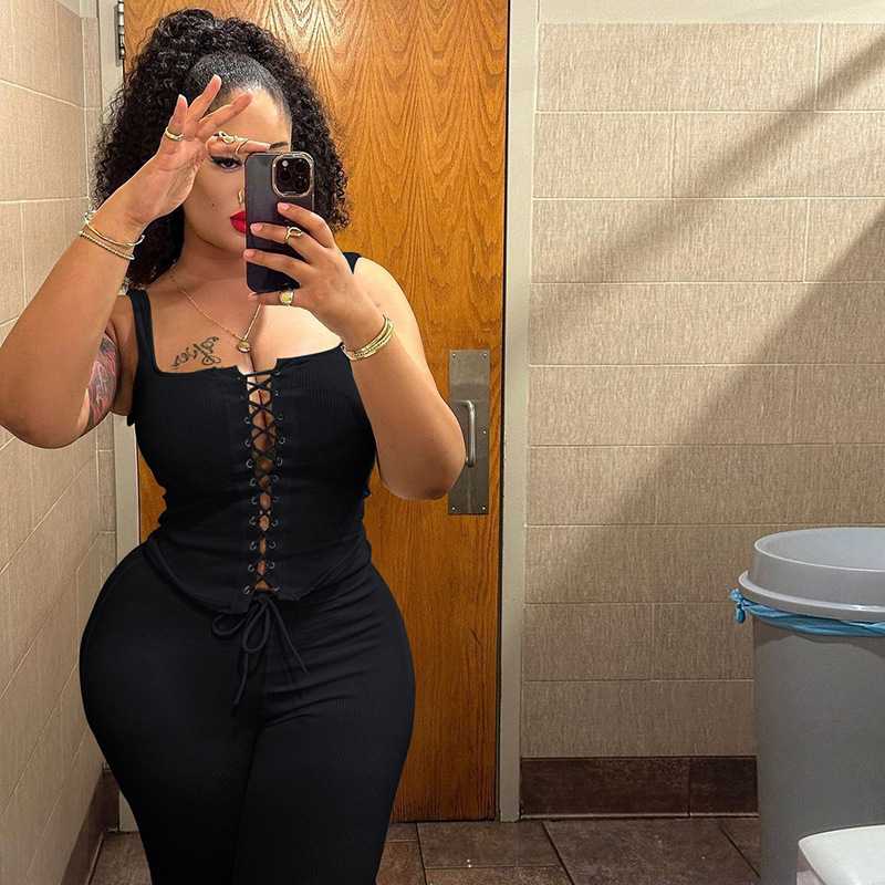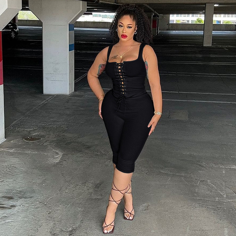 Lace-Up Slim-Fit Vest Shorts Suit