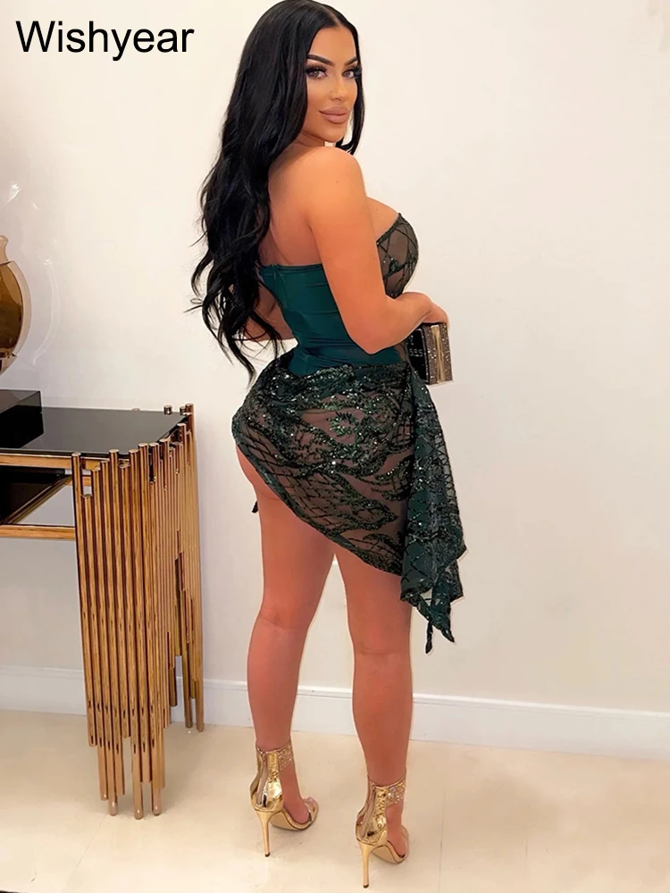 Luxury Sequins Strapless Irregular Bodycon Mini Dress
