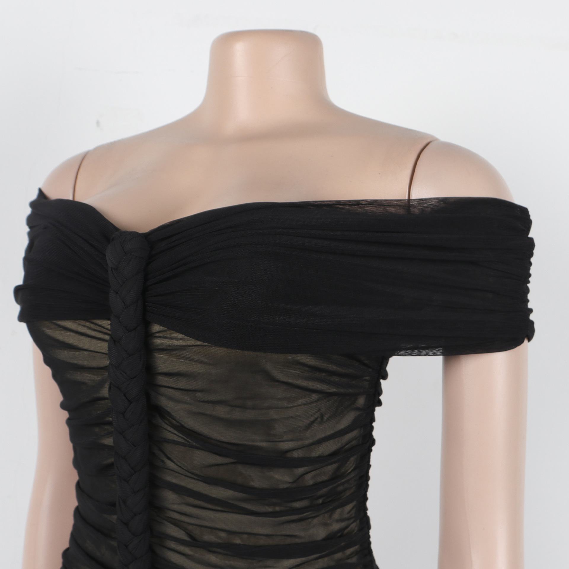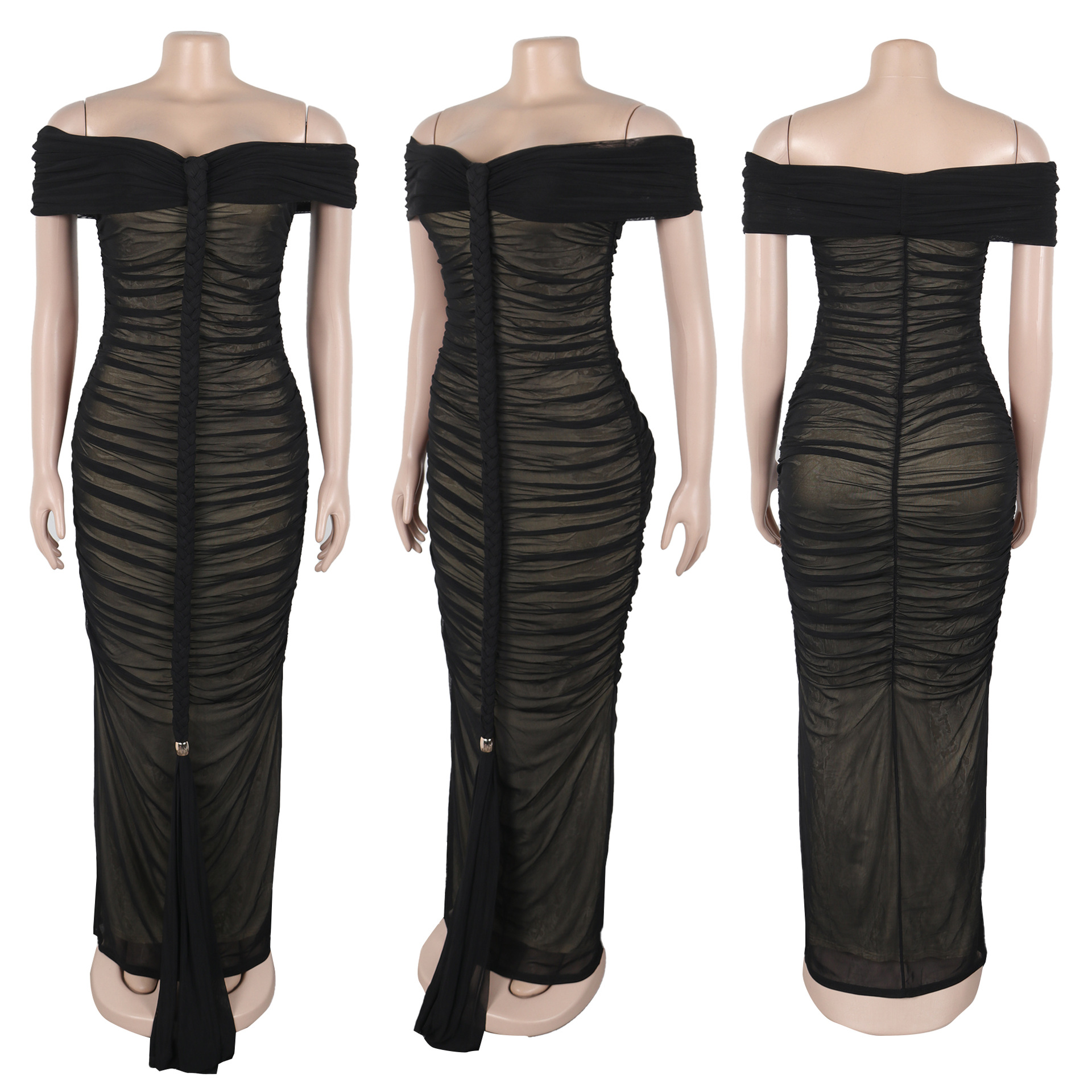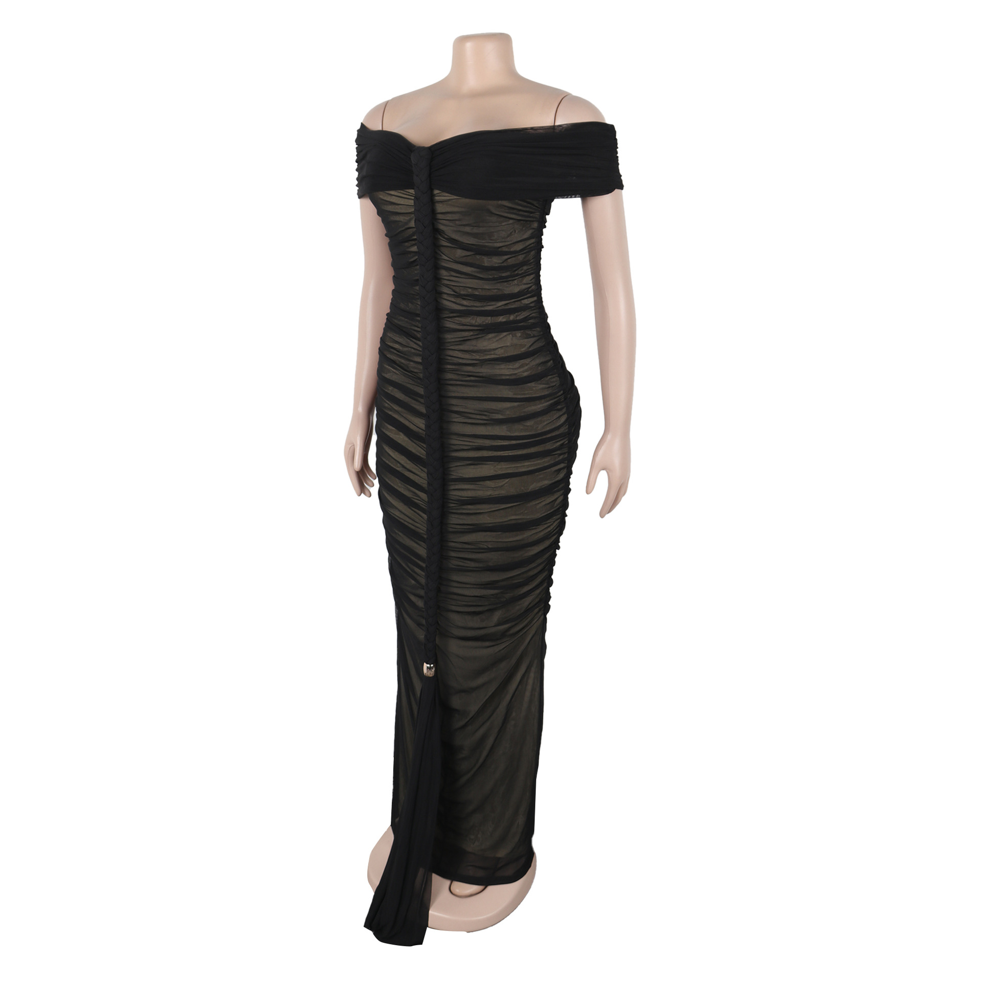 New Fashion Sexy Pleated Mesh Extra Long Dress