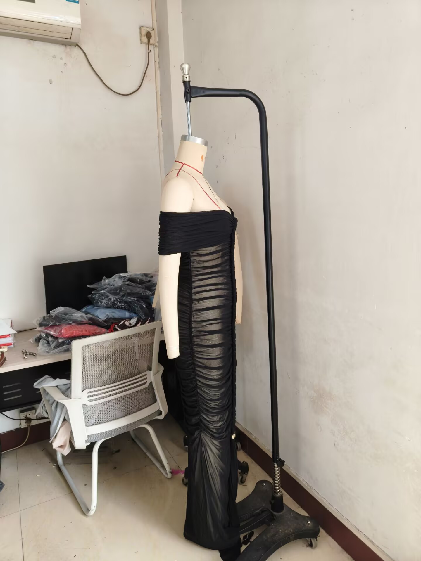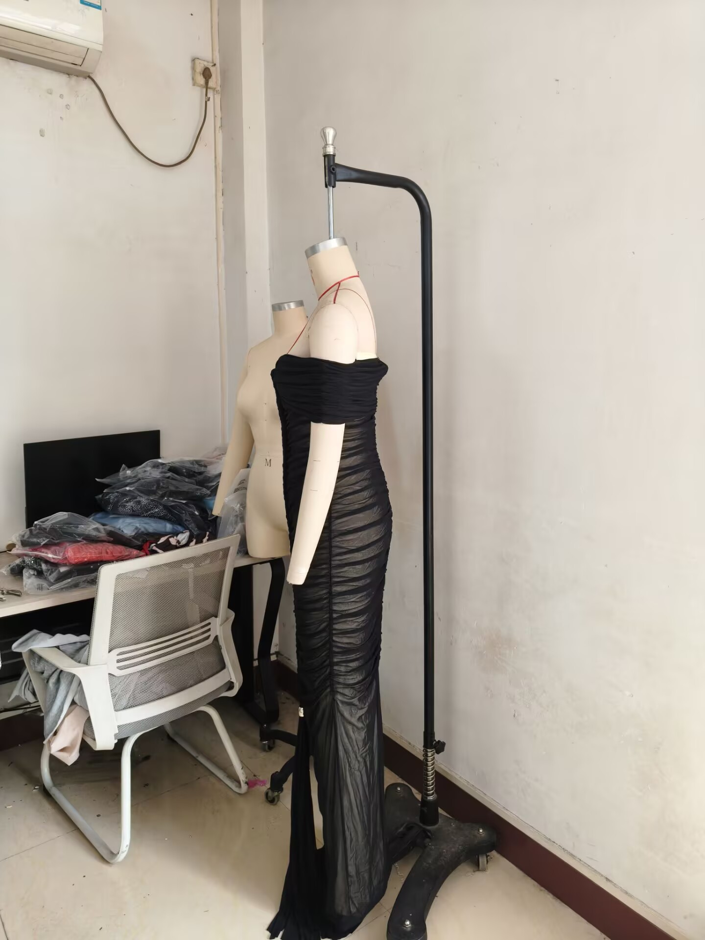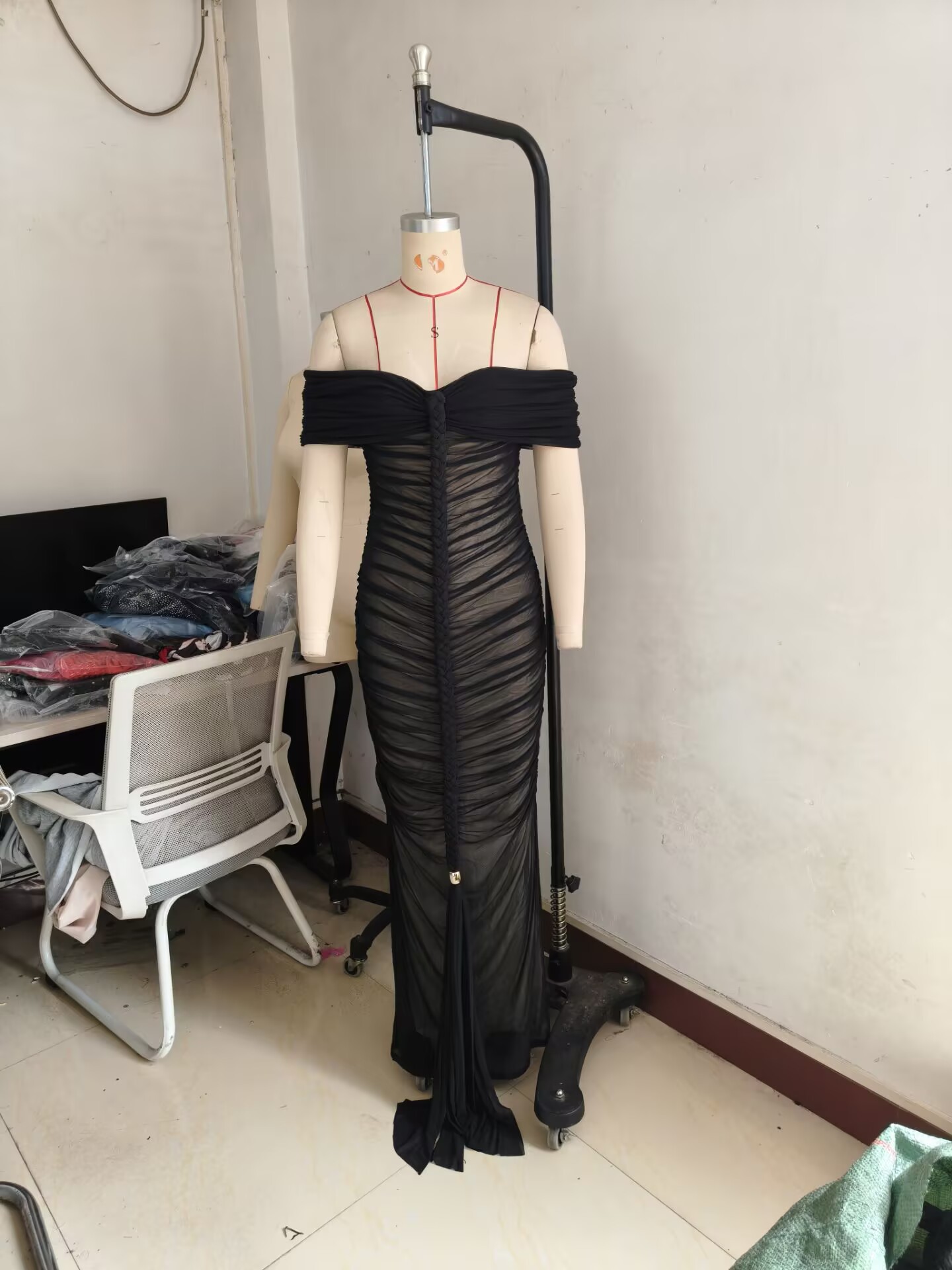 New Fashion Sexy Pleated Mesh Extra Long Dress
