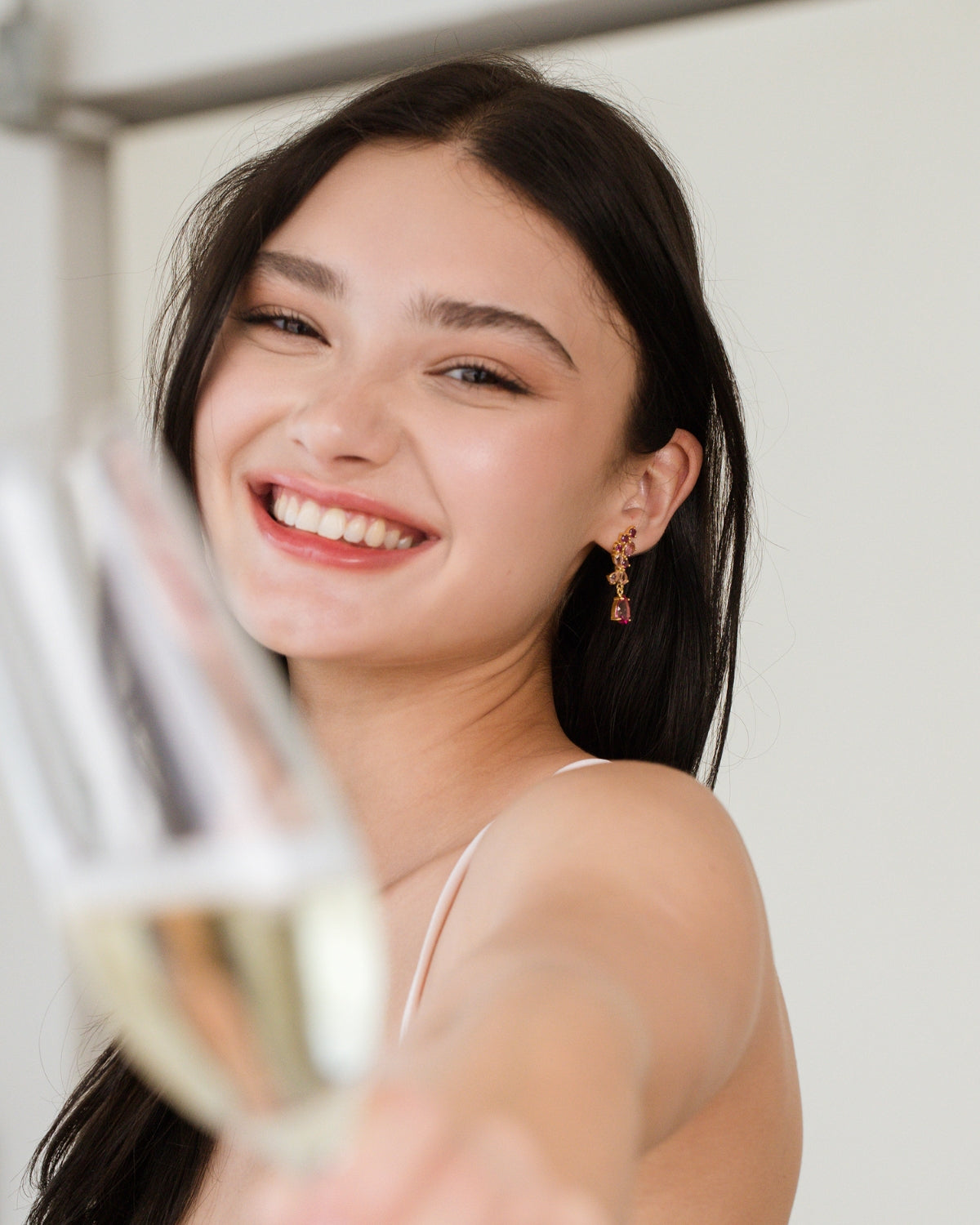 Pink Gemstone Drop Earrings in 18k Gold Vermeil