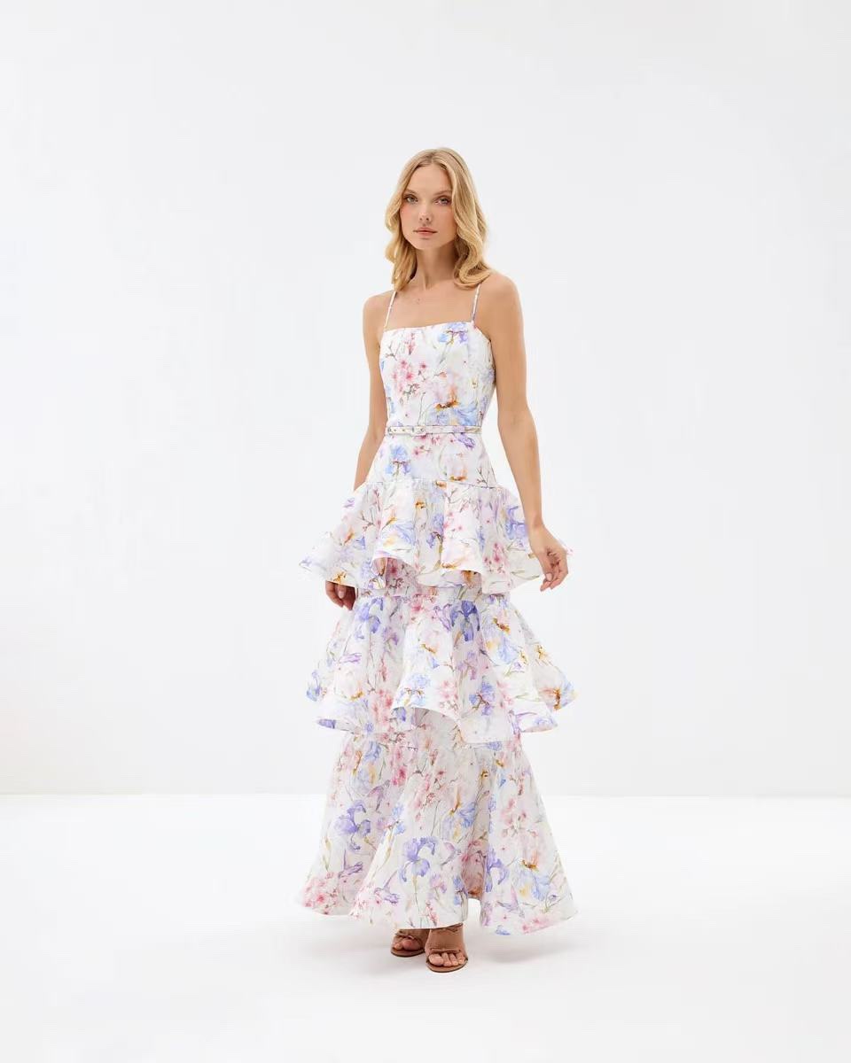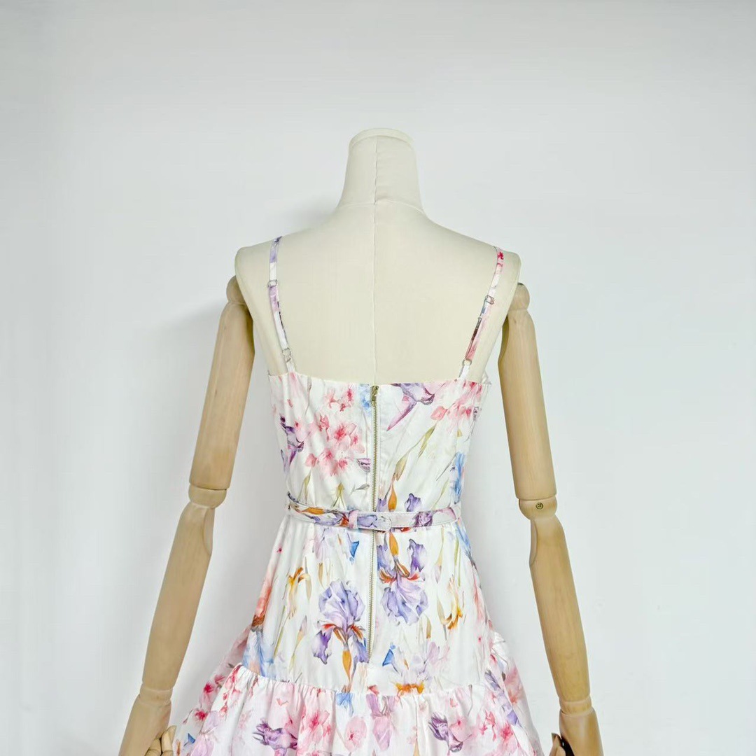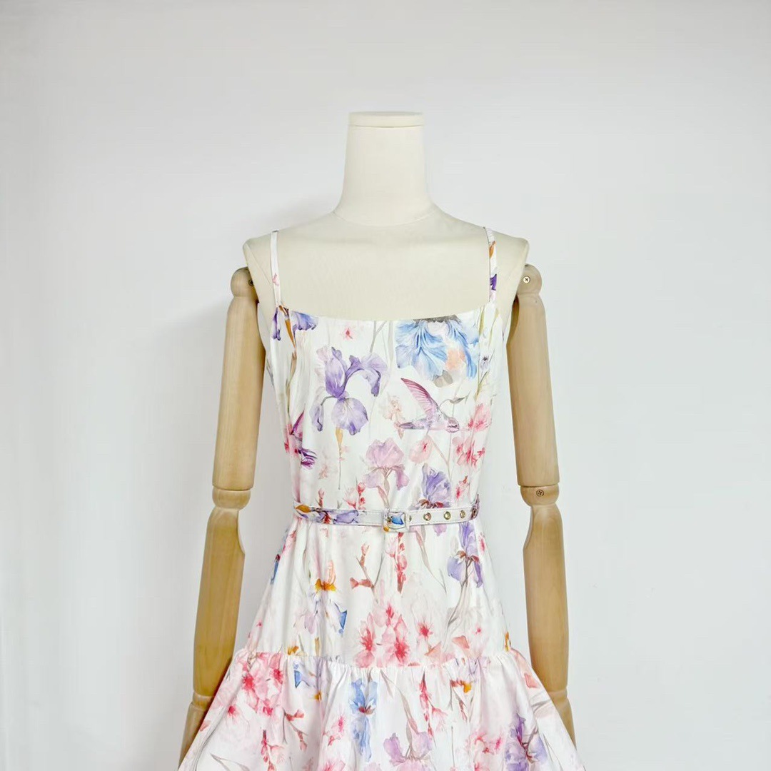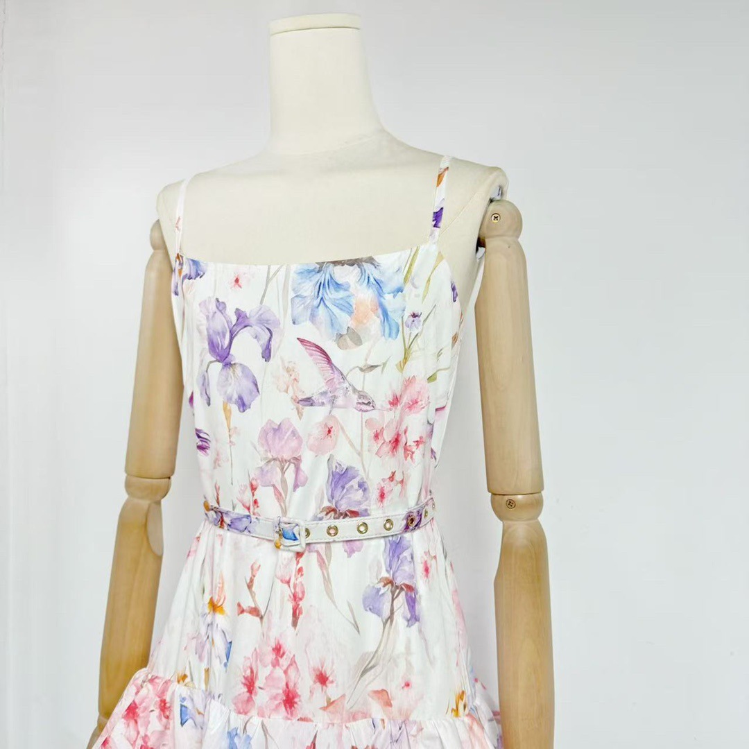 Printed Painted Belt Waist Slimming Dress
