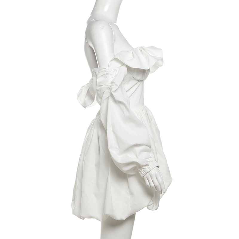 Puff-Sleeve Off-Shoulder High-Waist Mini Dress