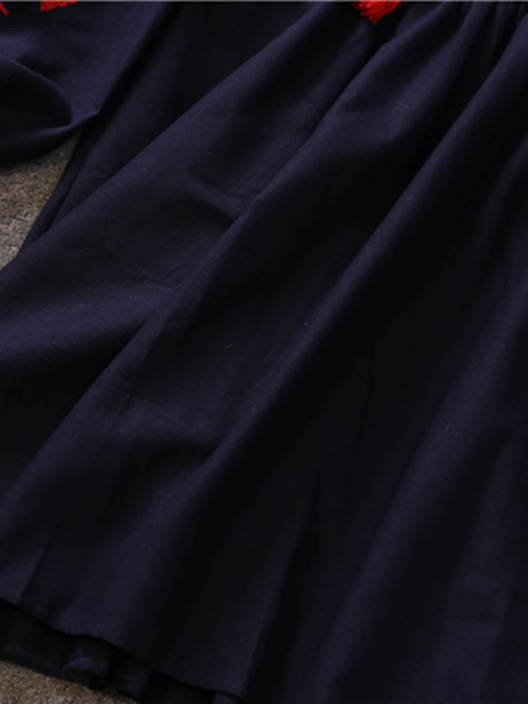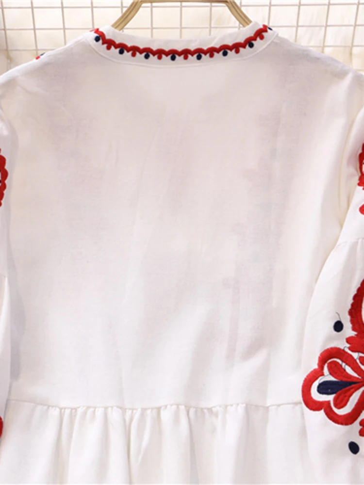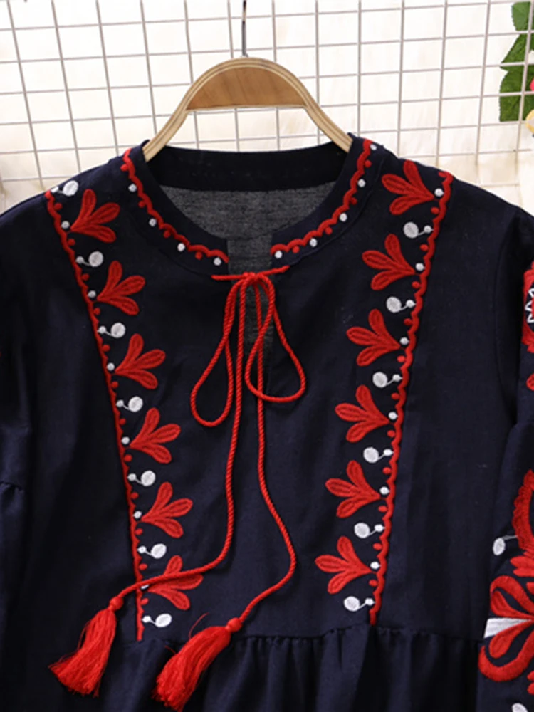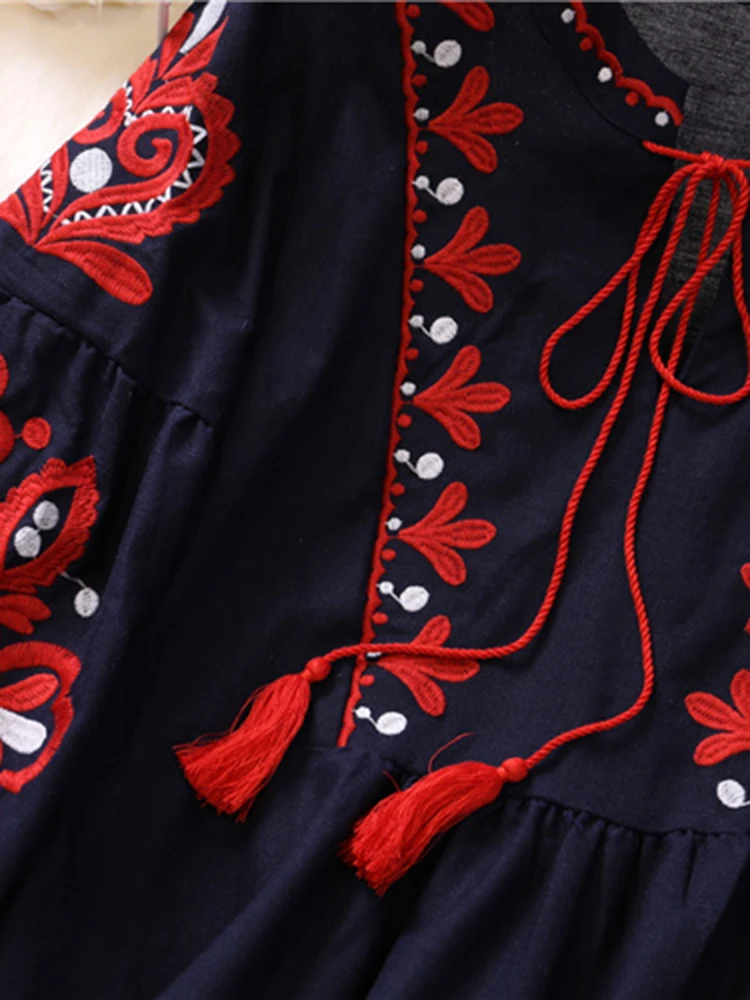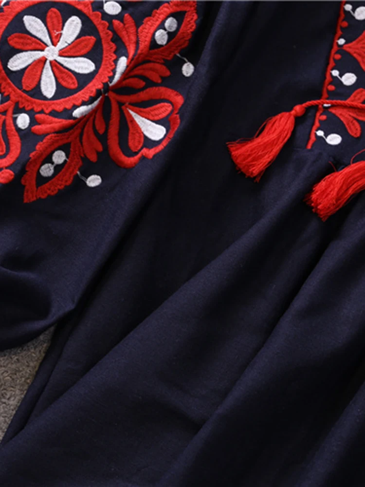 Retro Ethnic Embroidered Dress - Lantern Sleeves Bohemian Holiday Dress