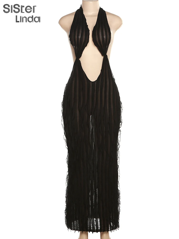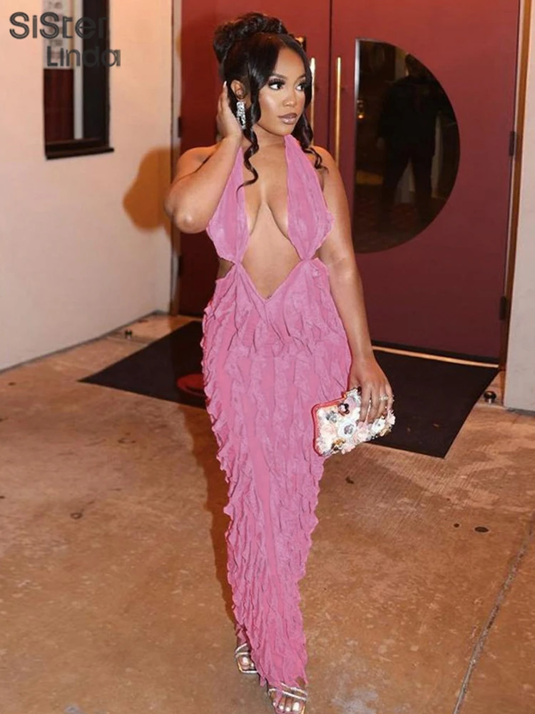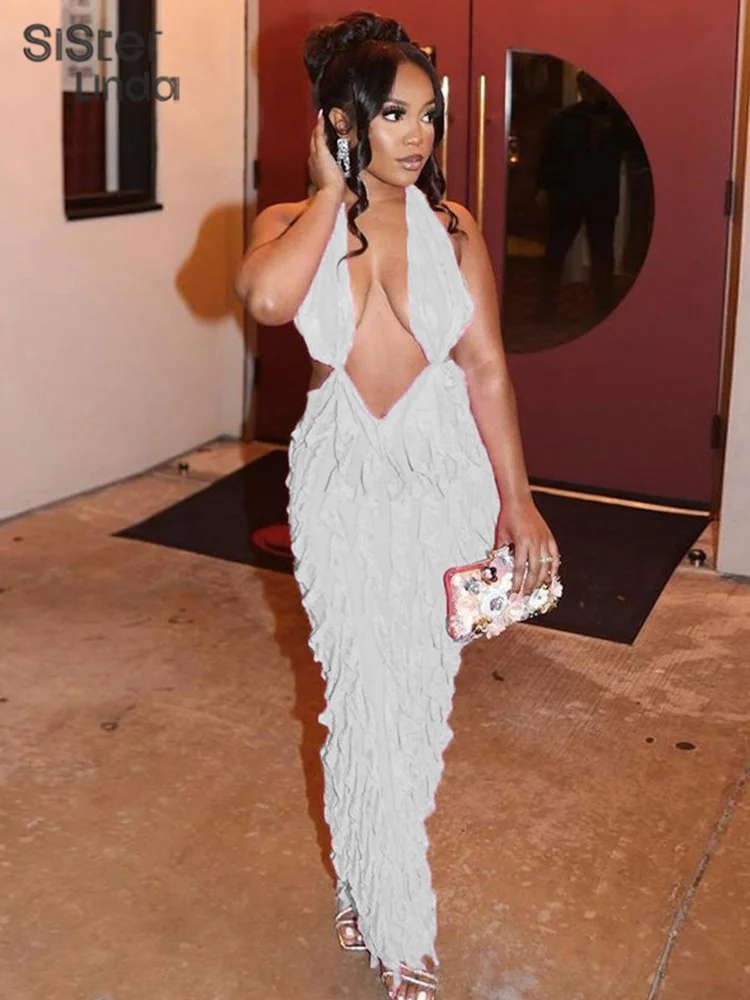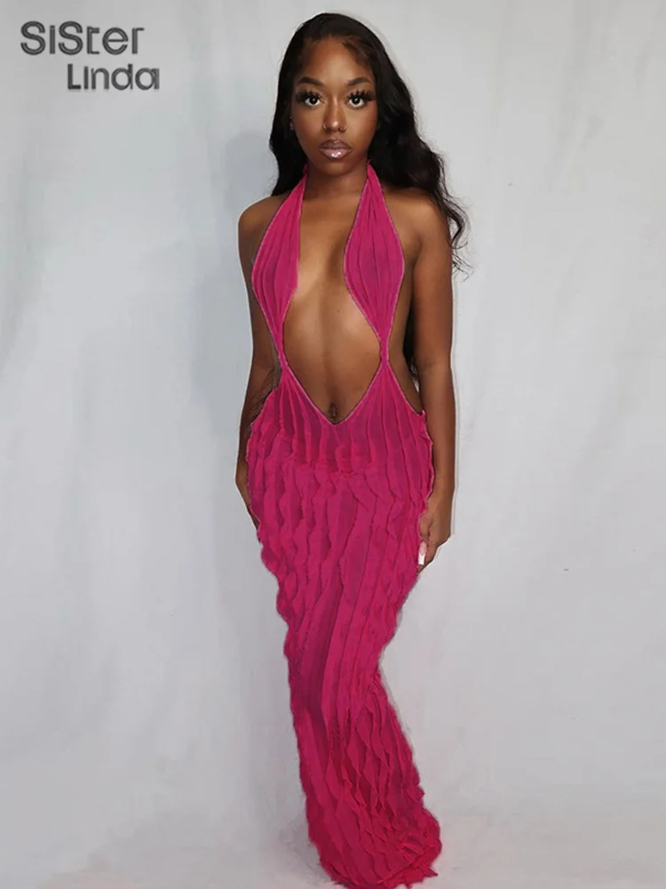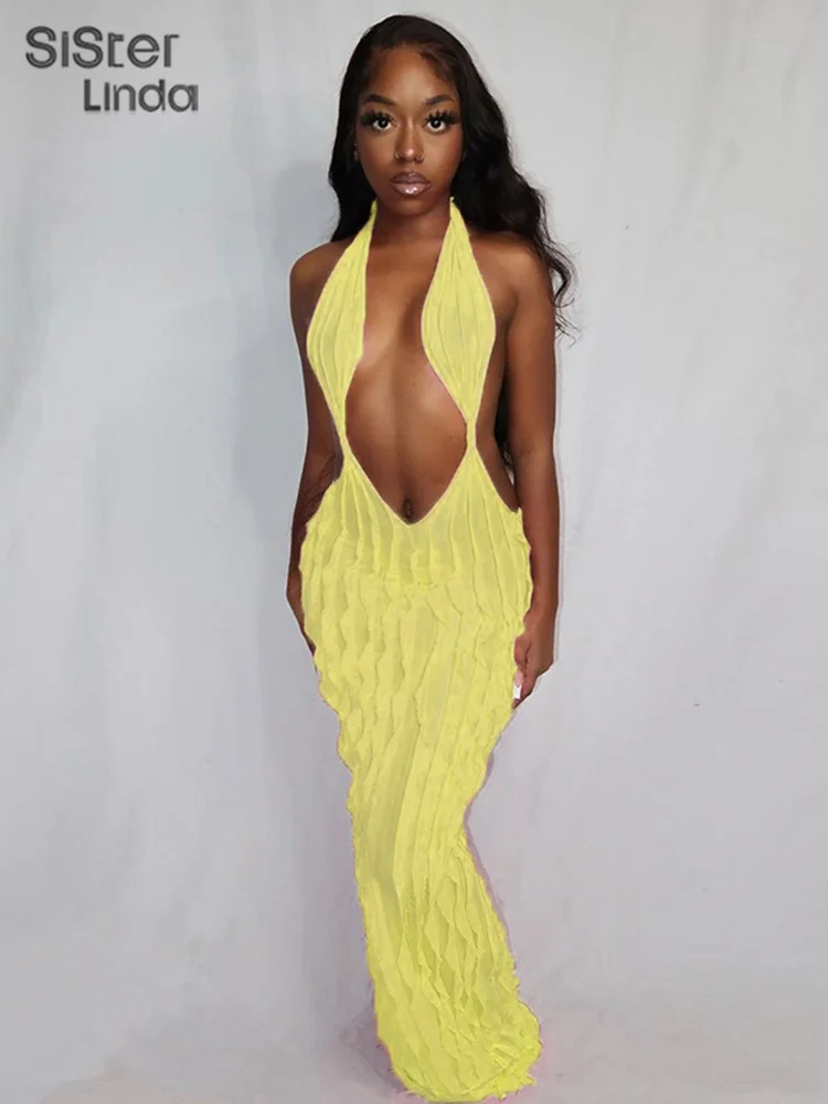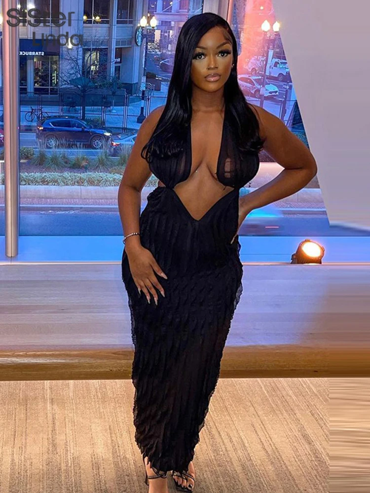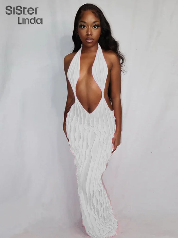 Sisterlinda Sexy Backless Maxi Dress Women Sleeveless Deep V-Neck Halter Long Dresses Female Party Clubwear Vestidos Mujer 2023