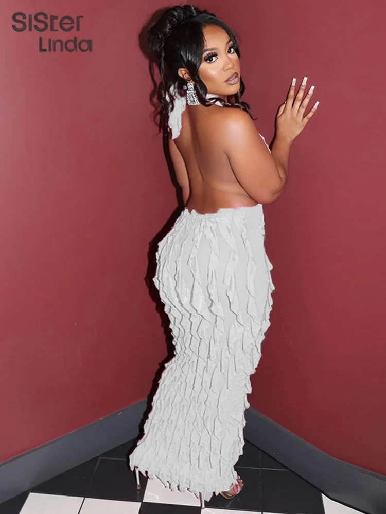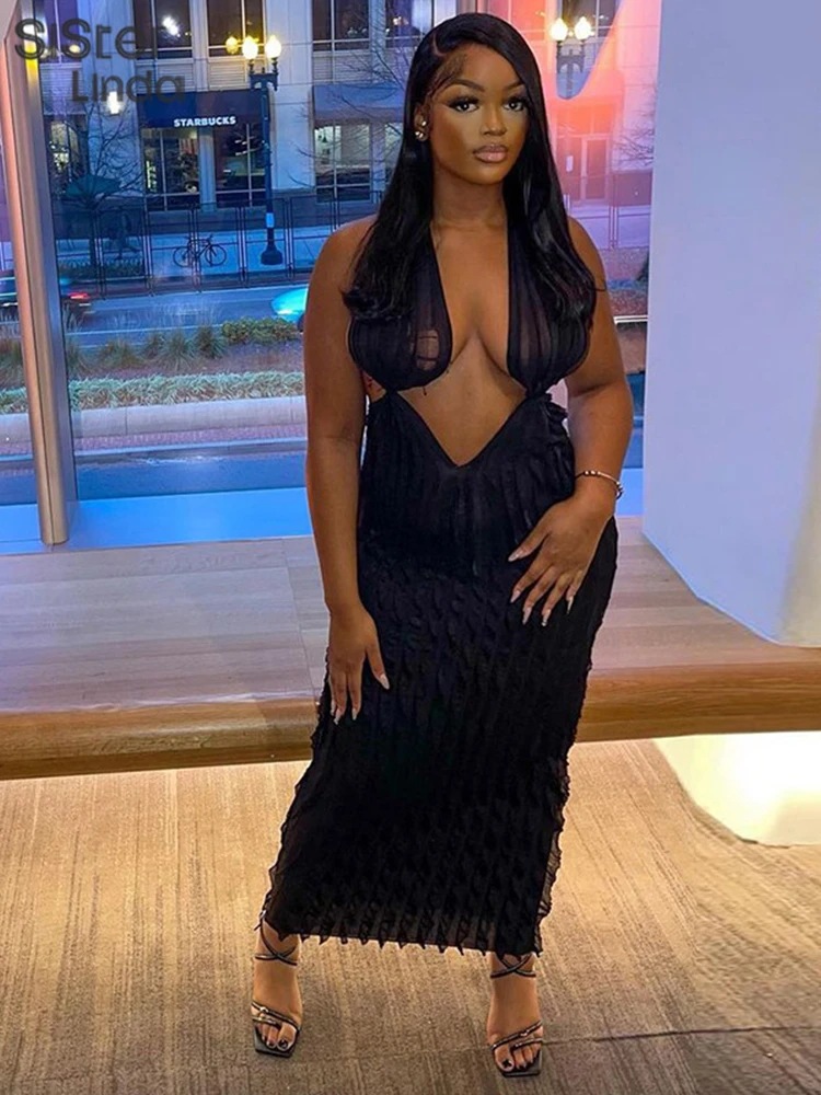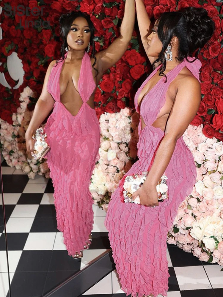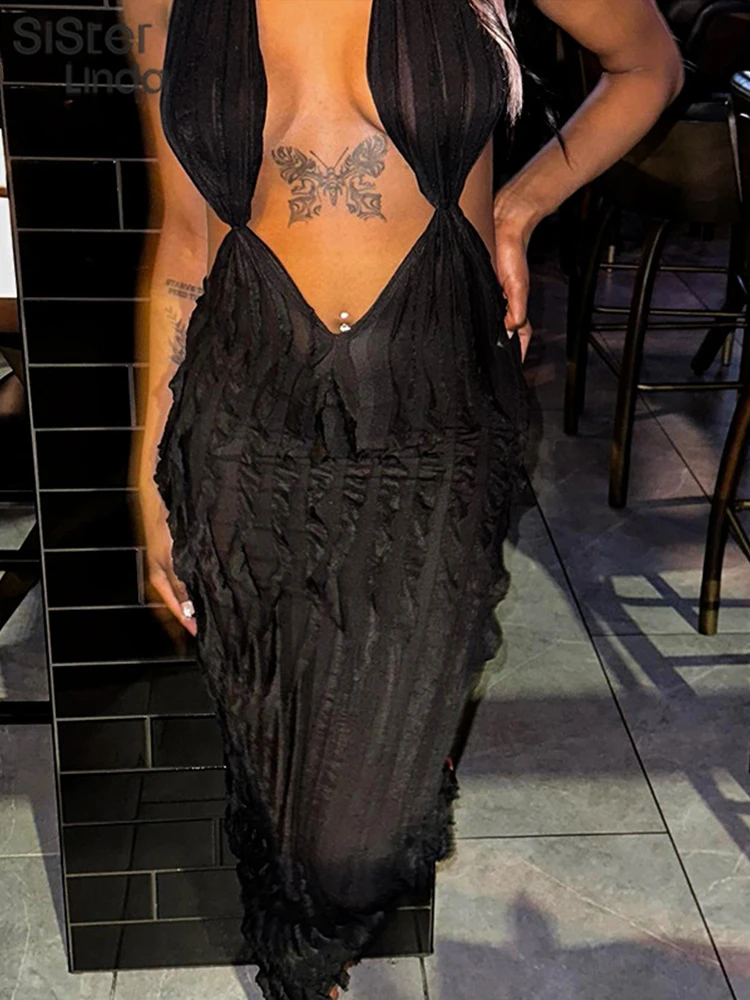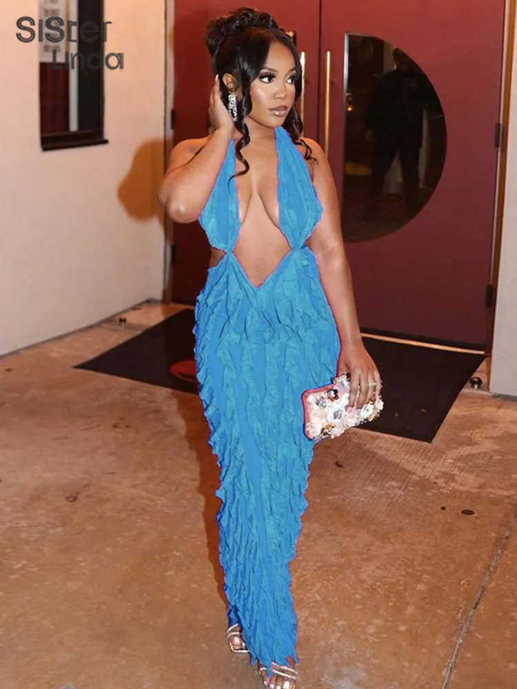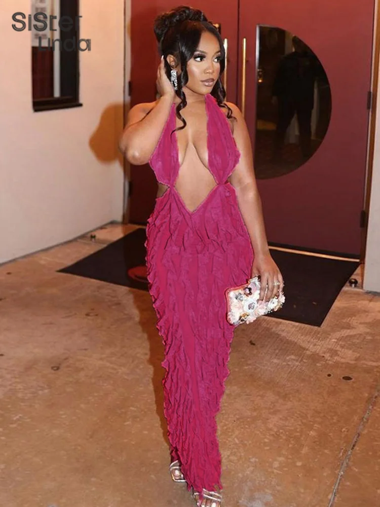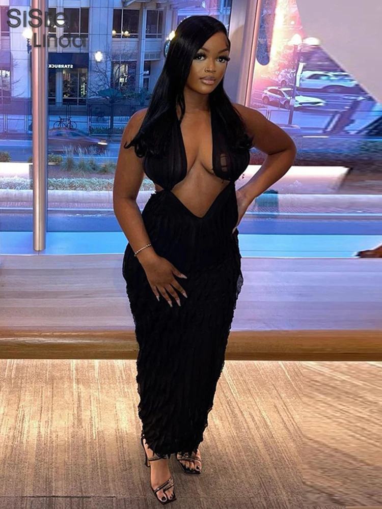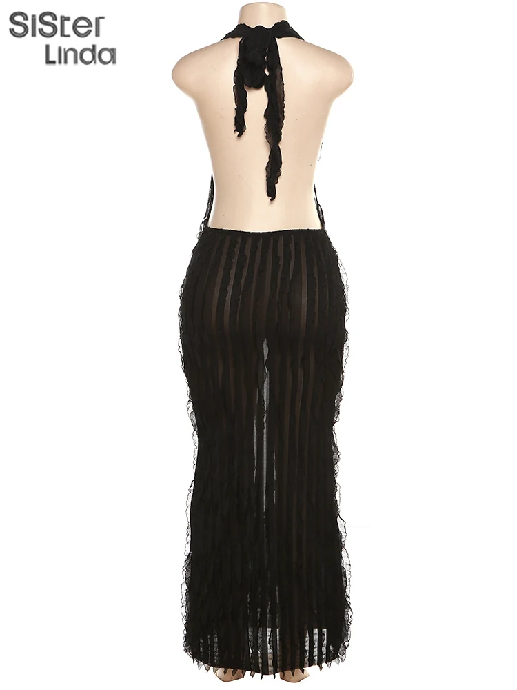 Sisterlinda Sexy Backless Maxi Dress Women Sleeveless Deep V-Neck Halter Long Dresses Female Party Clubwear Vestidos Mujer 2023