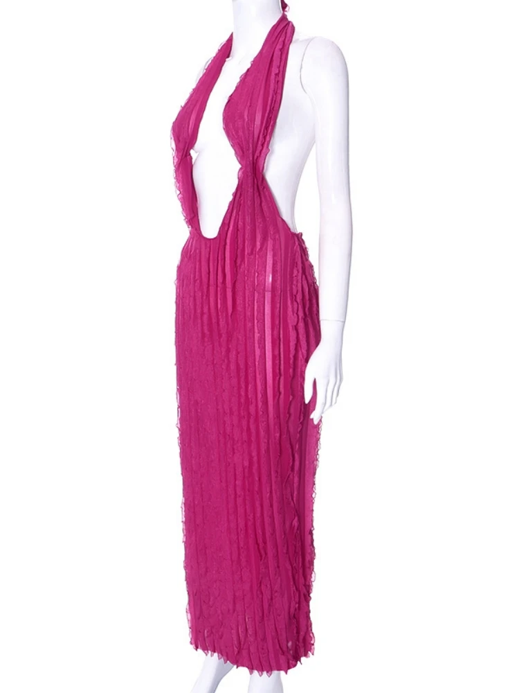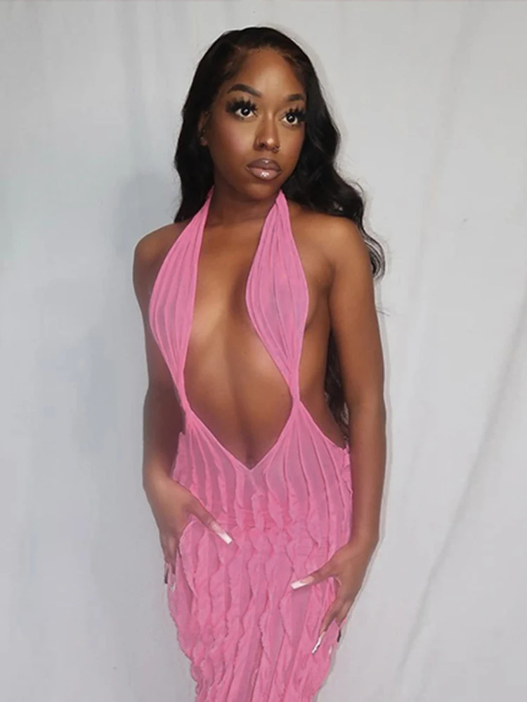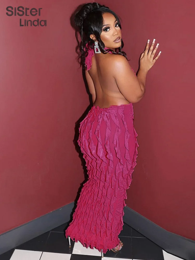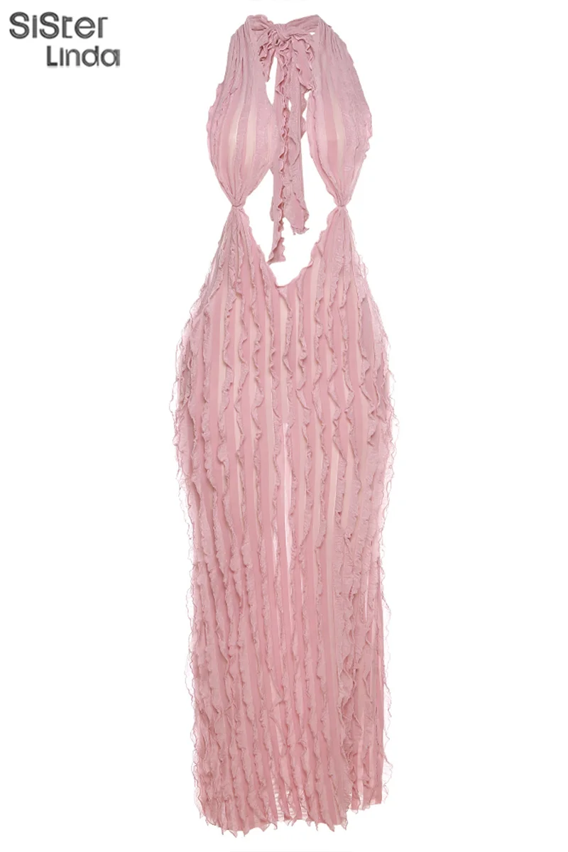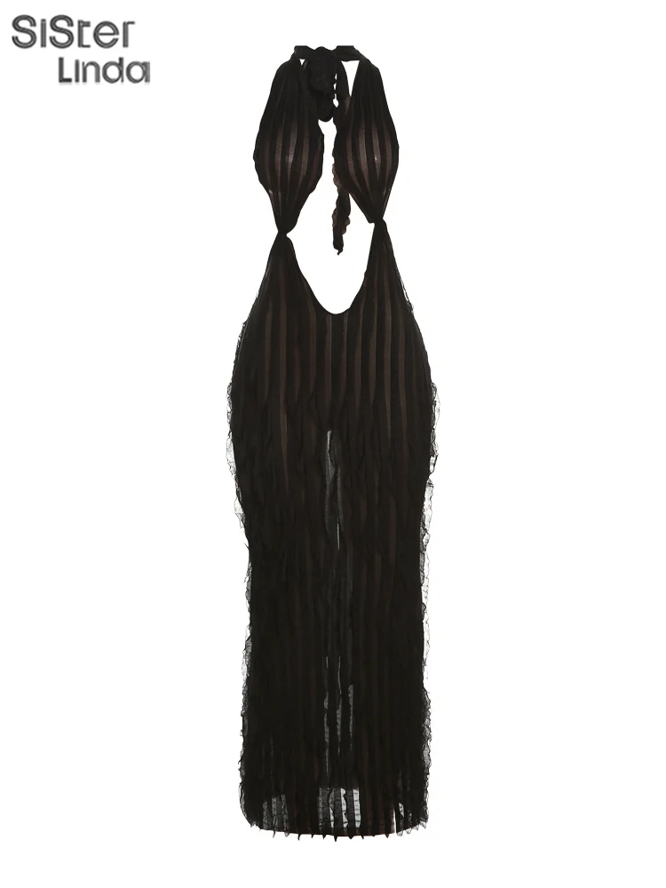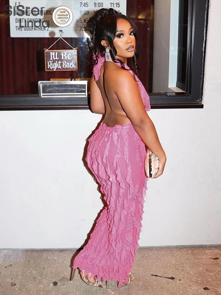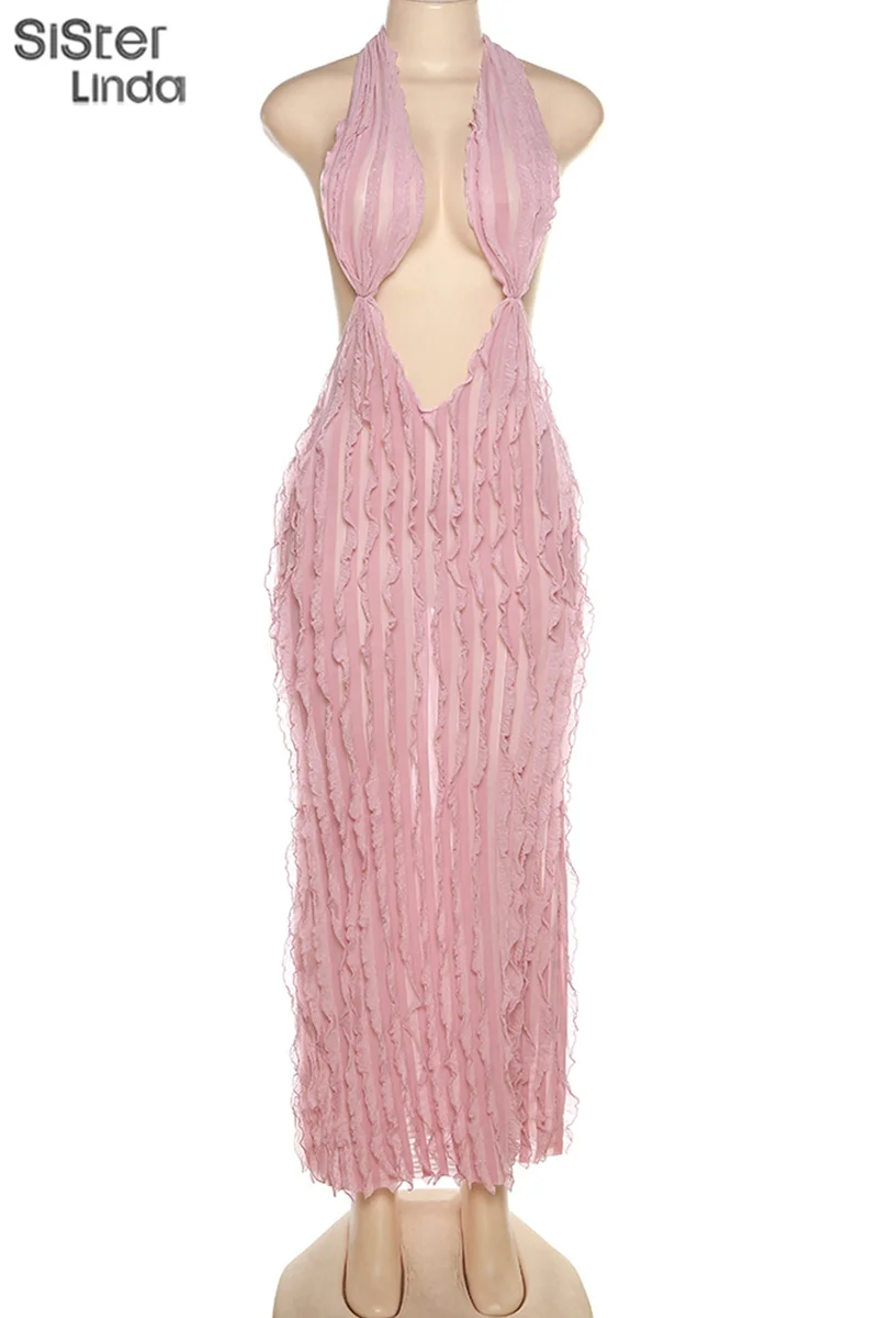 Sisterlinda Sexy Backless Maxi Dress Women Sleeveless Deep V-Neck Halter Long Dresses Female Party Clubwear Vestidos Mujer 2023