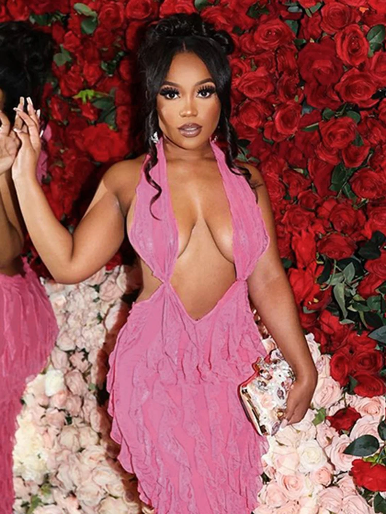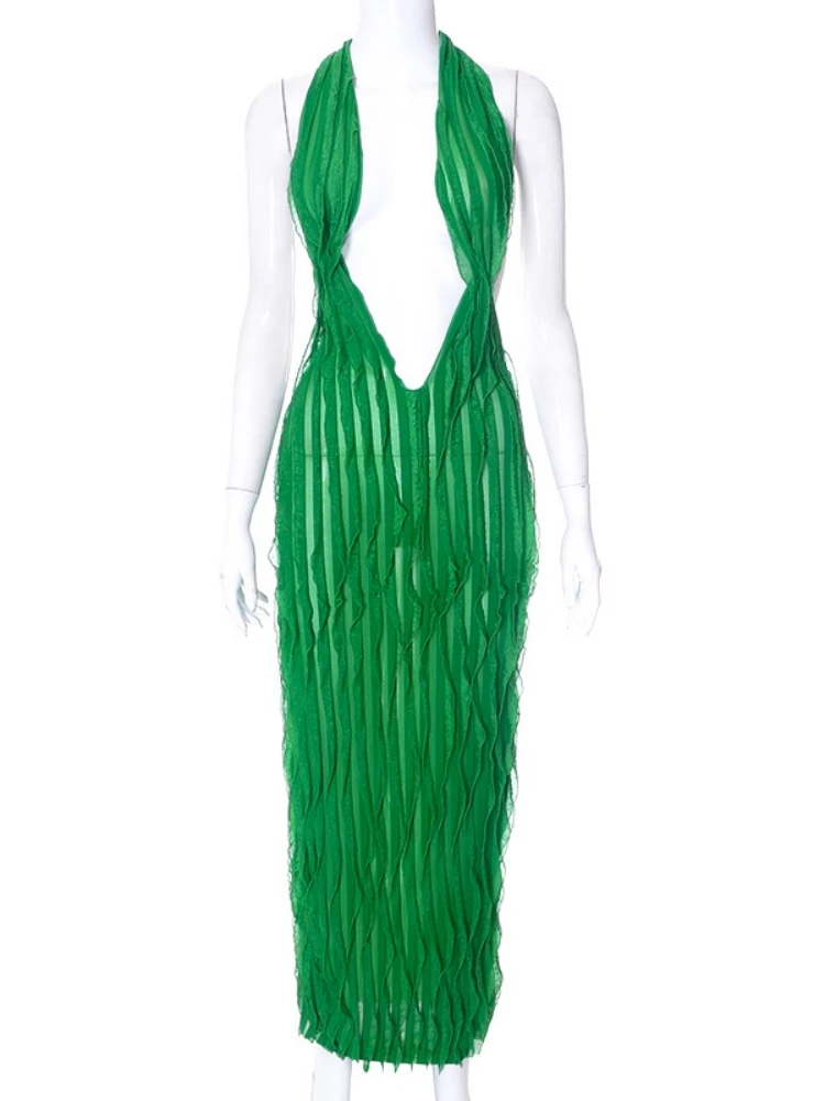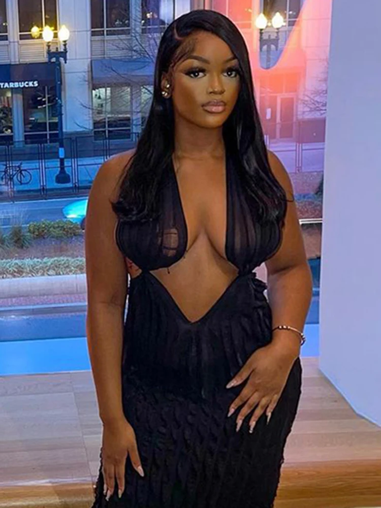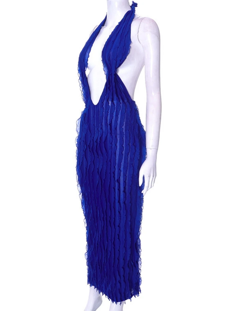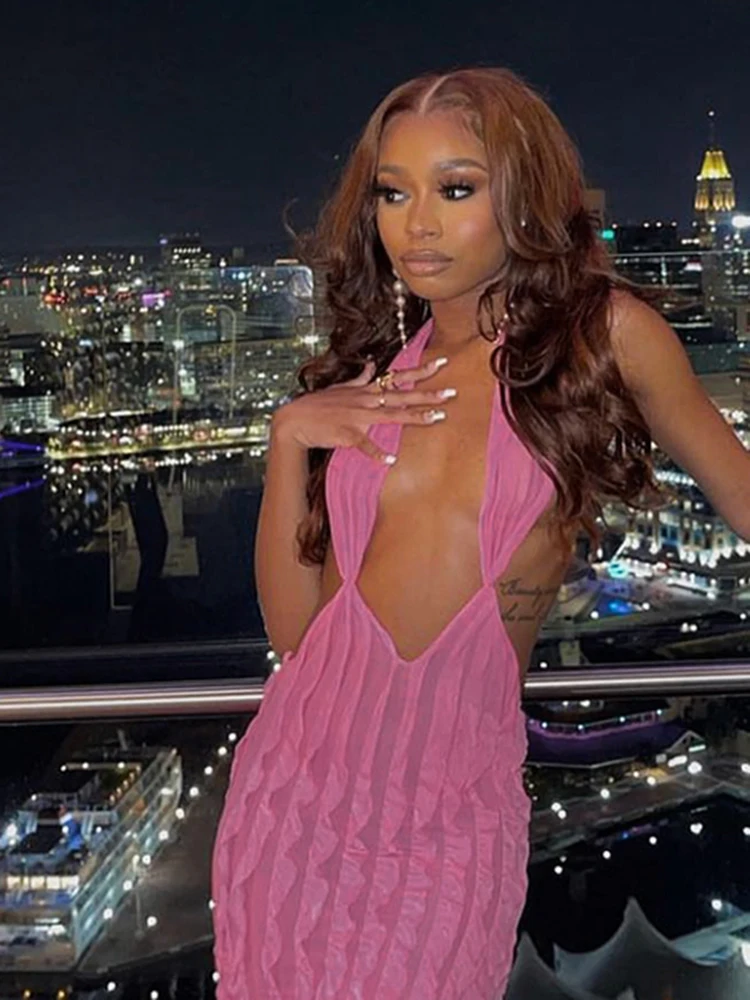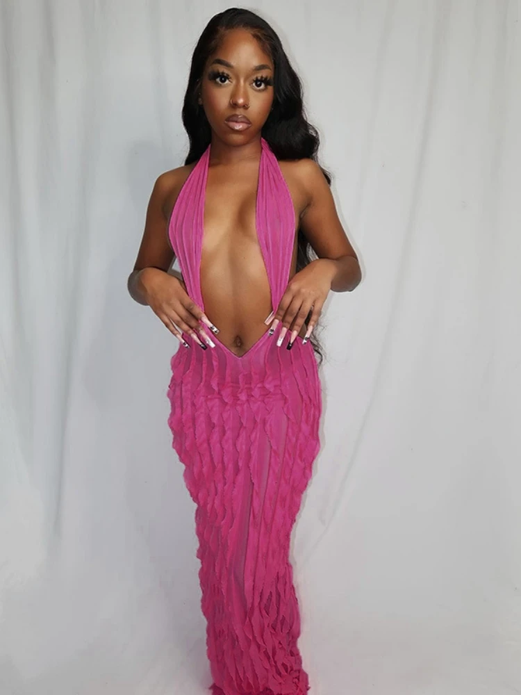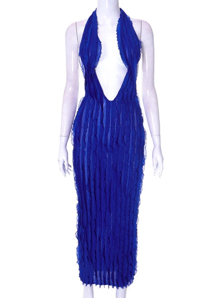 Sisterlinda Sexy Backless Maxi Dress Women Sleeveless Deep V-Neck Halter Long Dresses Female Party Clubwear Vestidos Mujer 2023