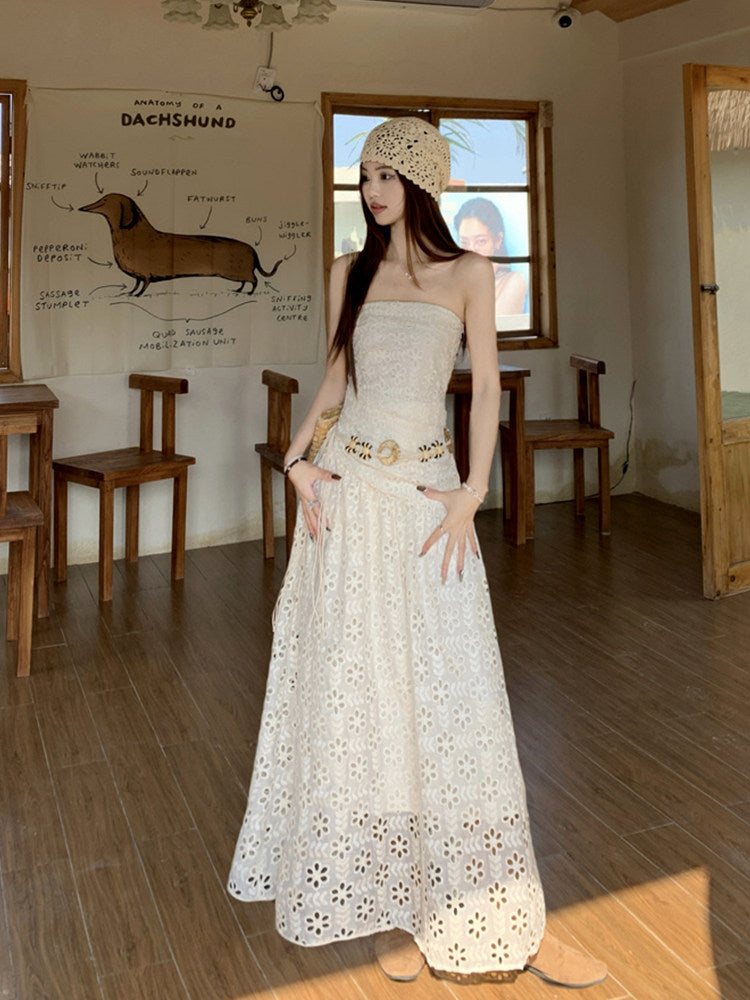 Summer Embroidered Dopamine Strapless Bohemian Style Dress For Women