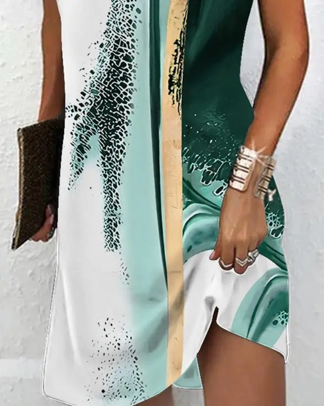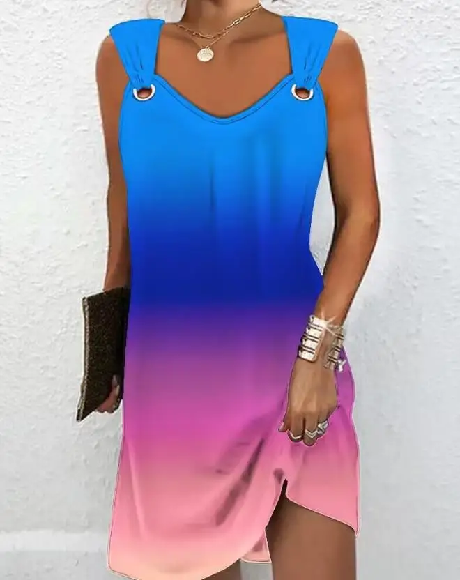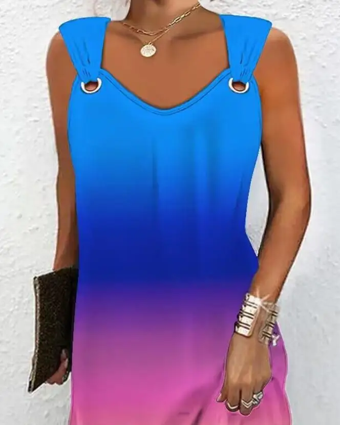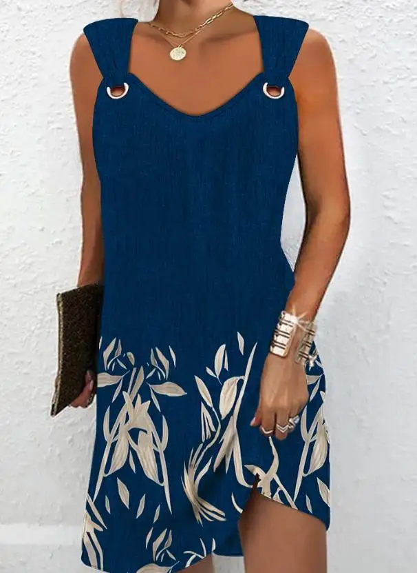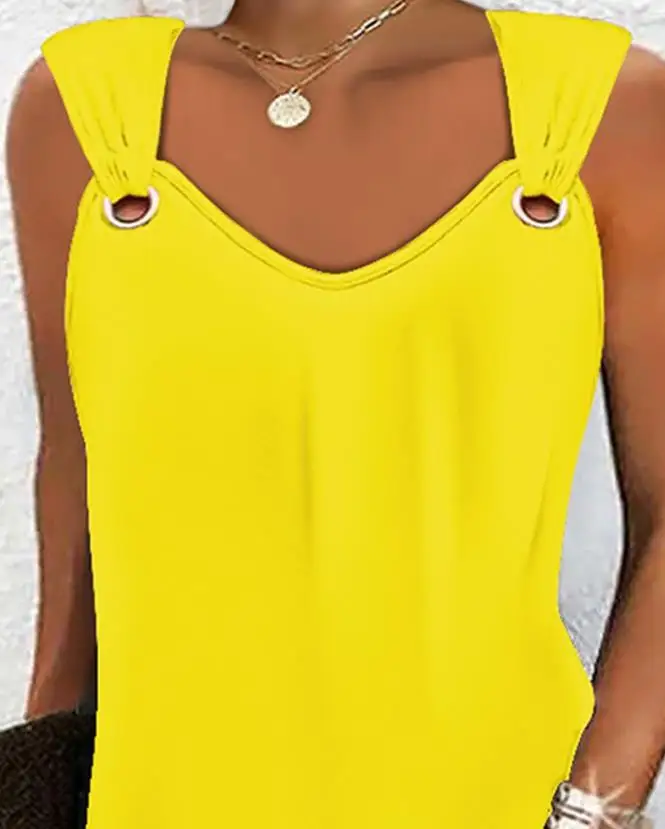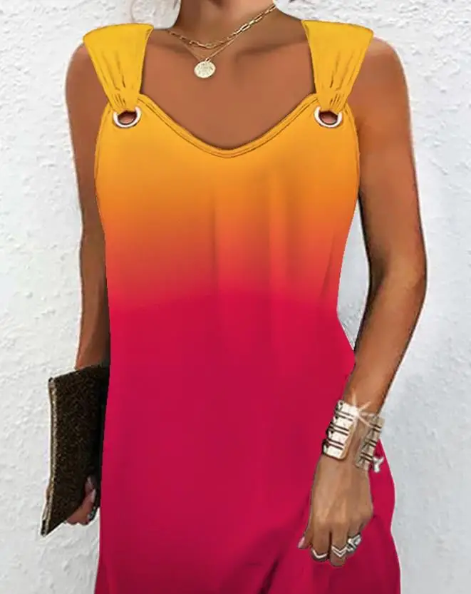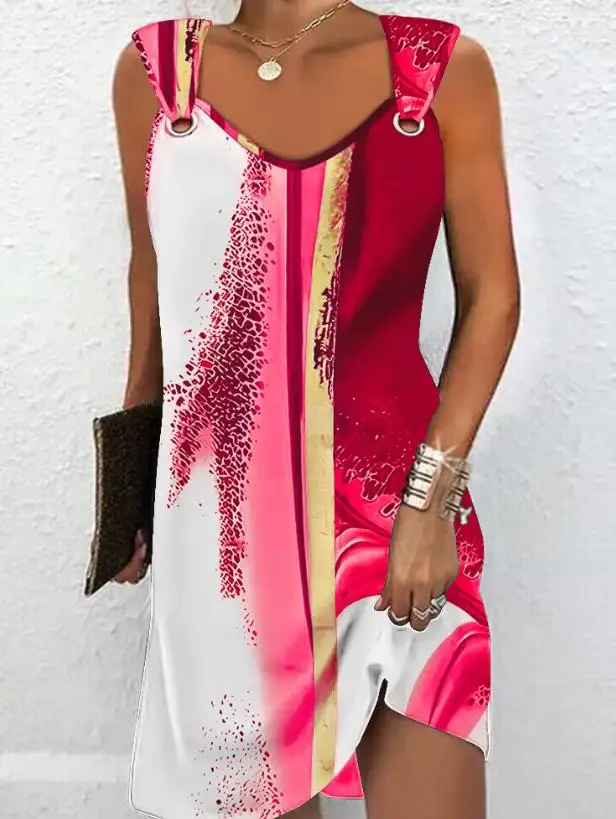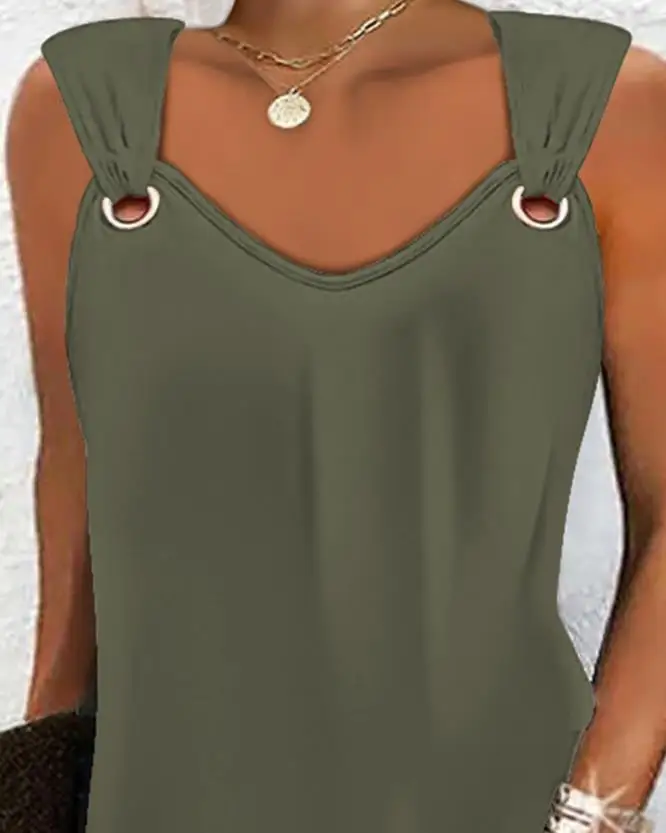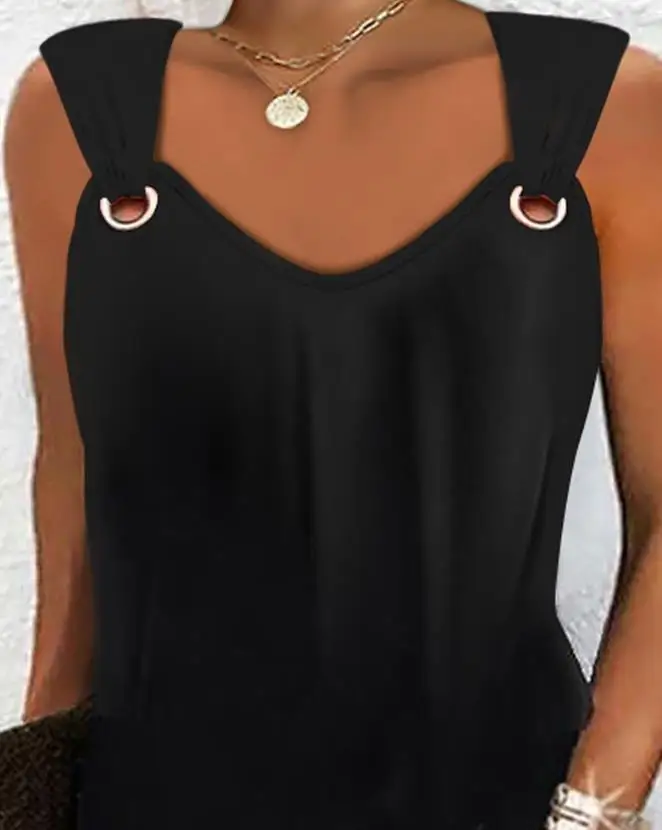 Solid-Colour Casual Elegant Sleeveless V-Neck Mini Dress