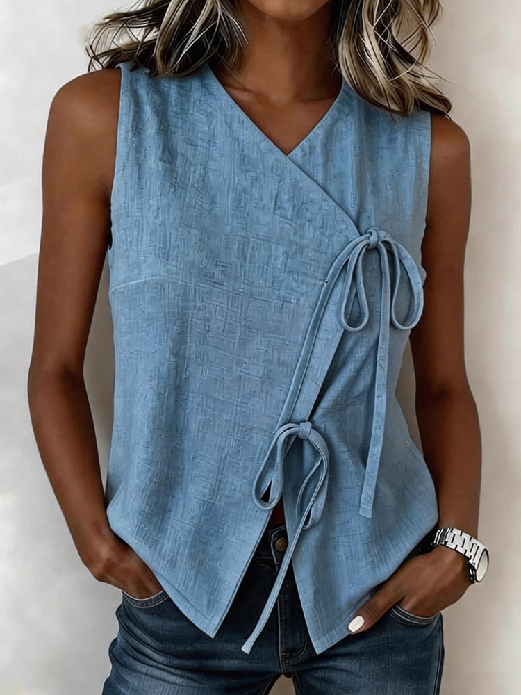 Womens Bow-Tied V-Neck Top Sleeveless Tank Top