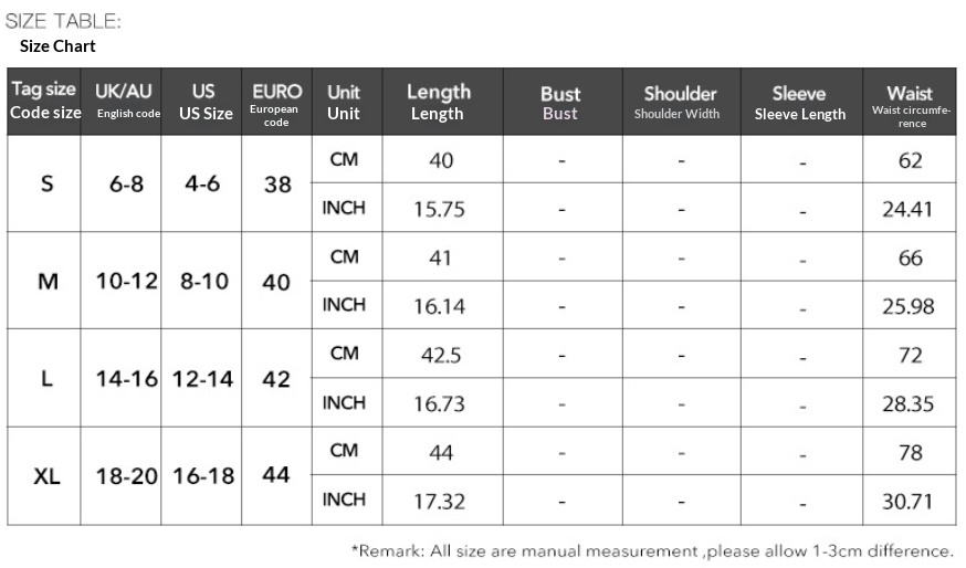 1. Asian sizes are 1 to 2 sizes smaller than European and American people. Choose the larger size if your size between two sizes. Please allow 2-3cm differences due to manual measurement. 2. Please check the size chart carefully before you buy the item, if you don't know how to choose size, please contact our customer service. 3.As you know, the different computers display colors differently, the color of the actual item may vary slightly from the following images.